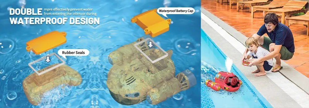 Лодка для распыления воды с дистанционным управлением изготовлена из высококачественногоМатериал ABSС хорошими водонепроницаемыми характеристиками. На крышке аккумуляторного отсека есть резиновое уплотнение для предотвращения попадания воды во время работы, что значительно повышает ее водонепроницаемость. Герметичная Водонепроницаемая ручка пульта дистанционного управления может играть с распылительной моторной лодкой в воде. Это можетПокорите любую экстремальную ситуациюИ подходит для большинства открытых мест, таких как пруды, бани, бассейны, озера, пологие реки и океаны. Плавные изгибы и конструкция без заусенцев делают его безопасной и приятной игрушкой для детей.