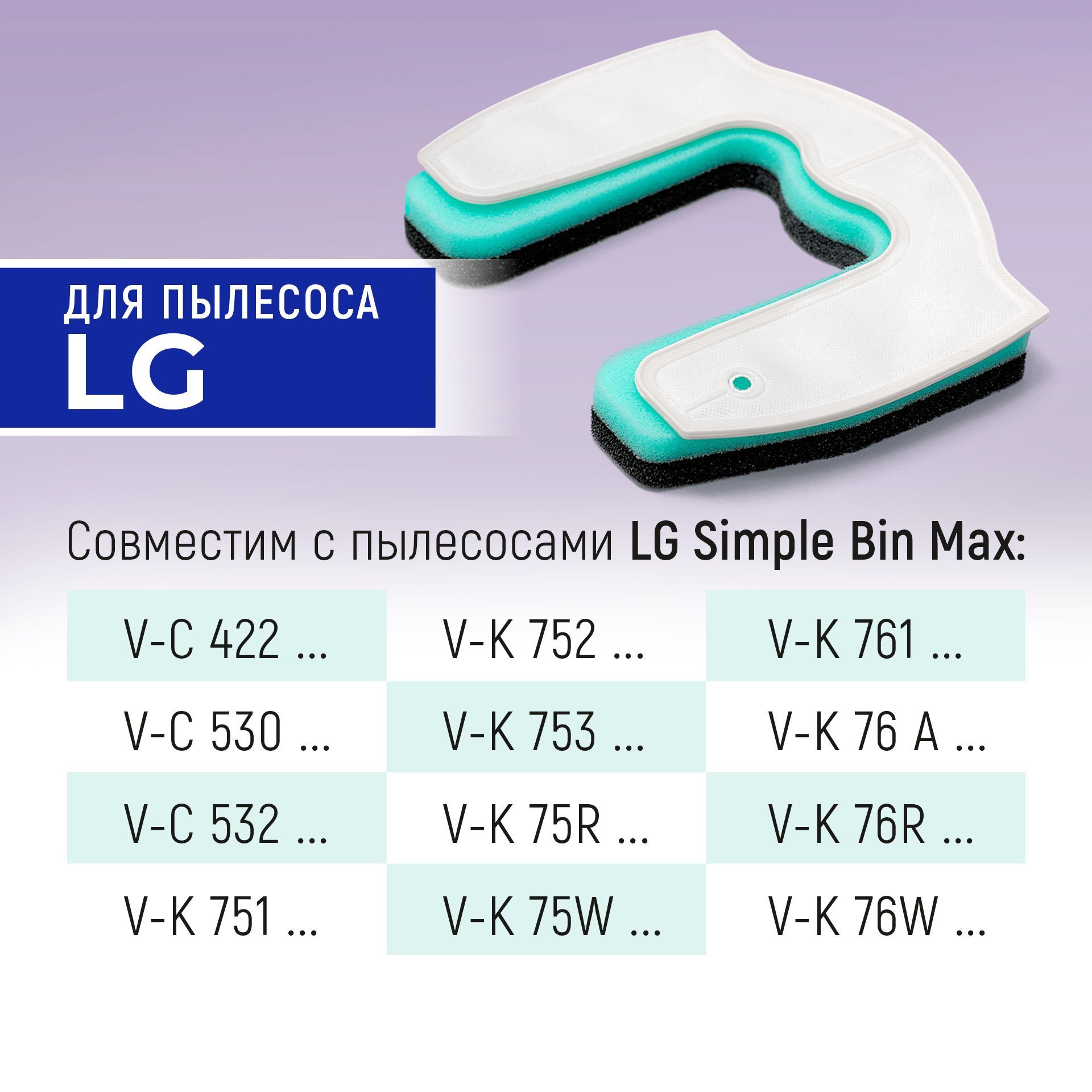 Фильтр совместим с пылесосами серии Simple Bin (симпл бин) VK75, VK76, VC 42201****, VC 42202****, VC53201****, VC53202****