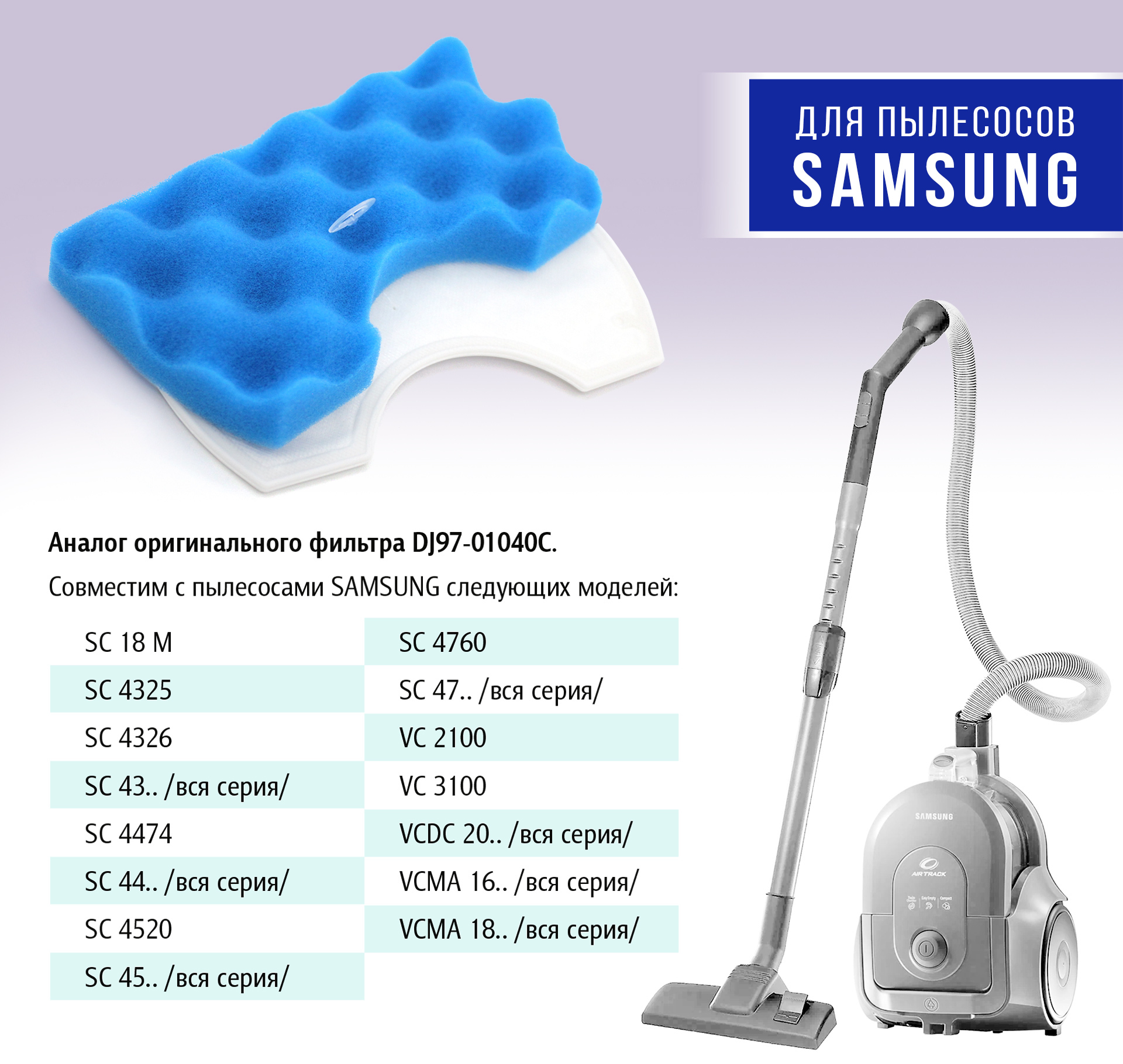 Описание: Моторный фильтр для пылесосов Samsung высокого качества, для моделей SC18** , SC43**, SC44**, SC45**, SC47**, VC 2100, VC 3100, VCDC 20**, VCMA 16**, CVMA 18**.