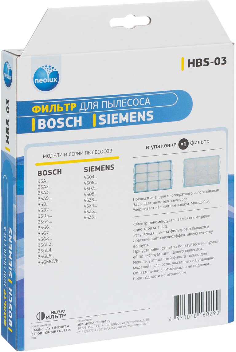 Описание: Фильтр для пылесосов BOSCH, SIEMENS. Моторный фильтр NEOLUX HBS-03 предназначен для пылесосов