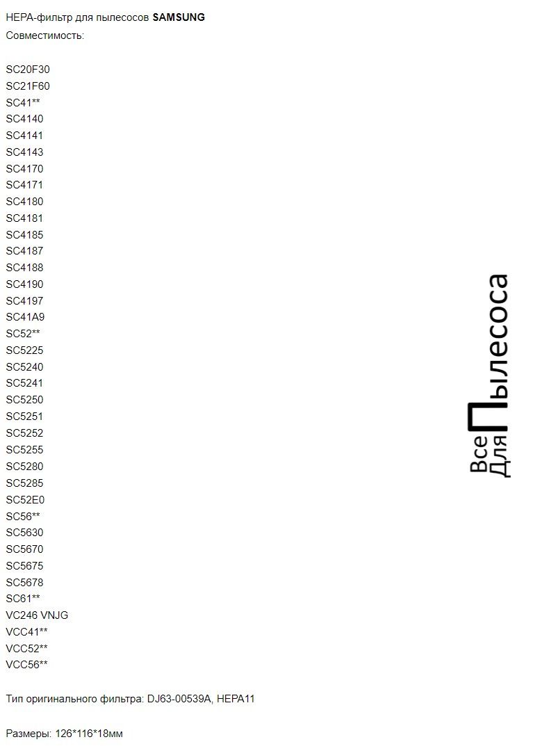 Описание: HEPA-фильтр для пылесосов SAMSUNG