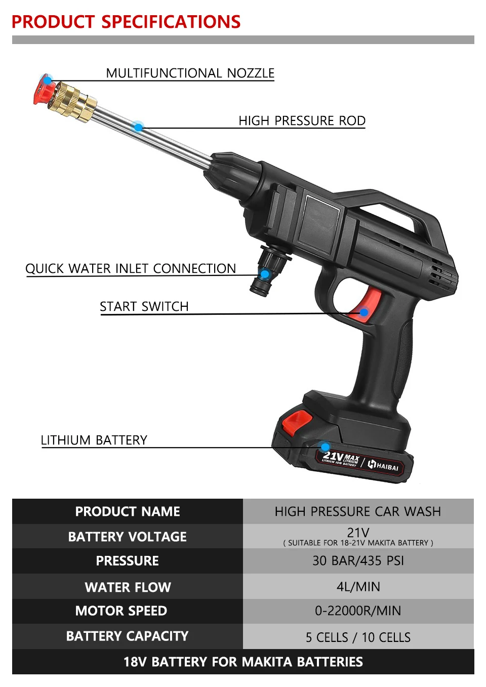 Мойка высокого давления автомобильная HAIBAI с аккумулятором