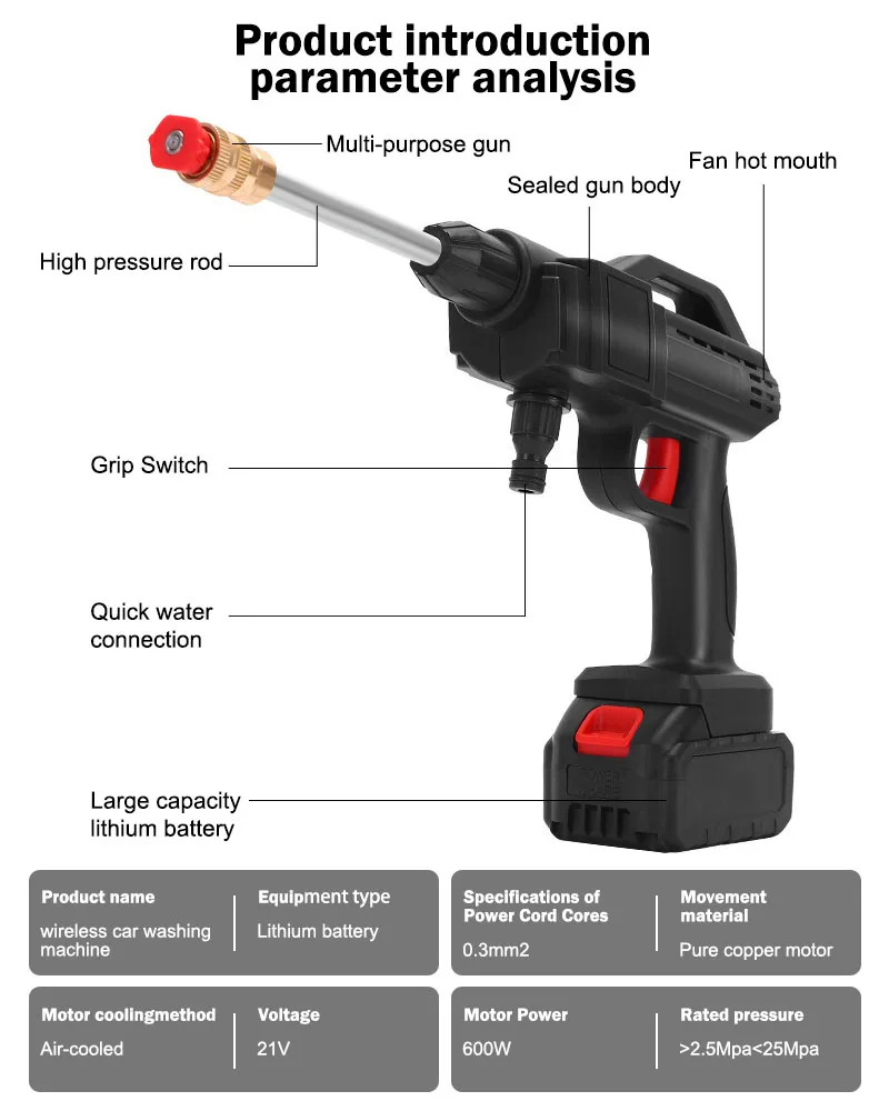 Мойка высокого давления Беспроводная с литий-ионным аккумулятором, 30000 мАч