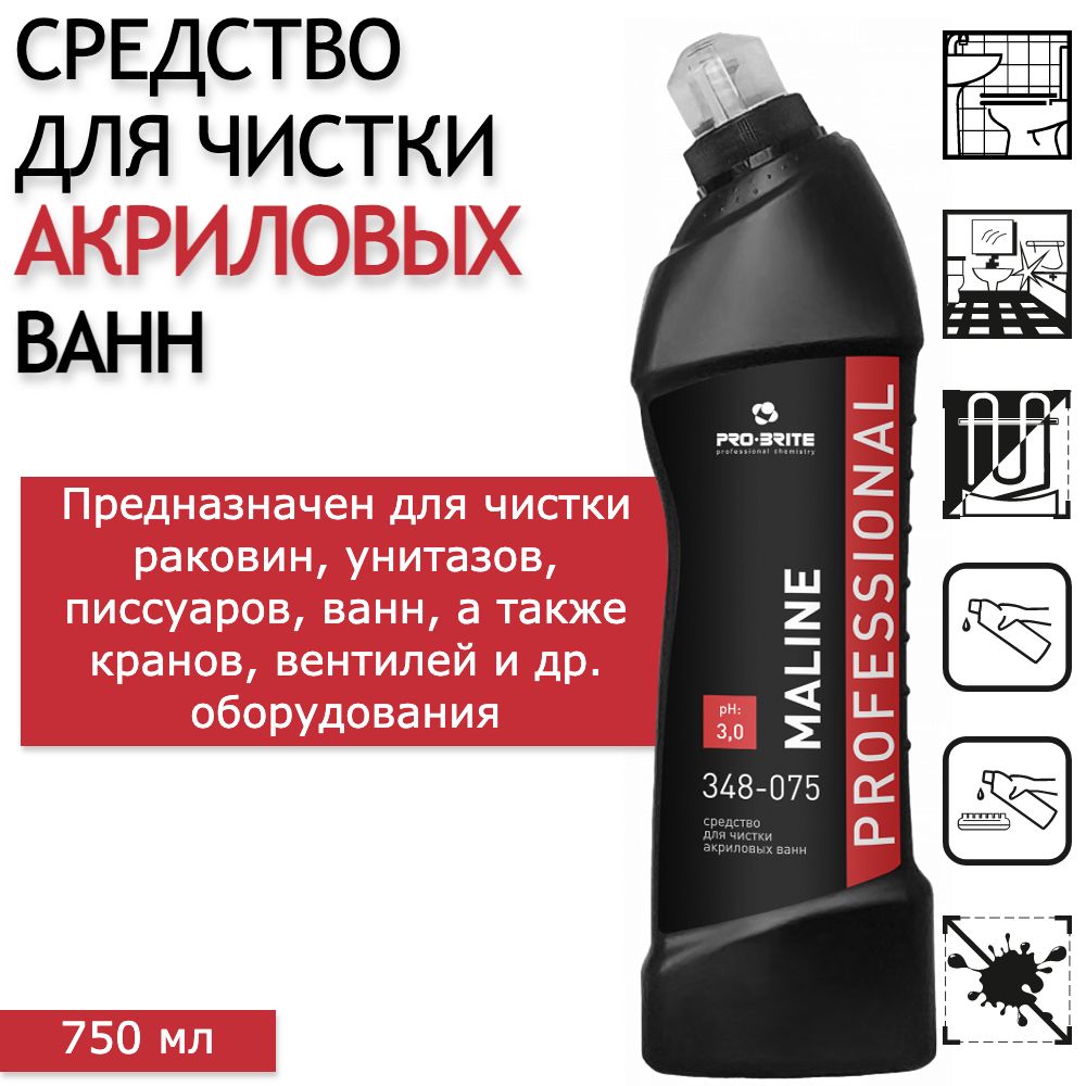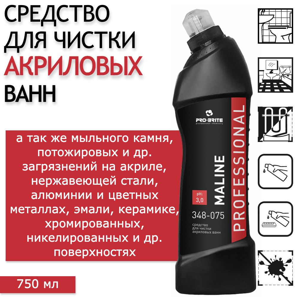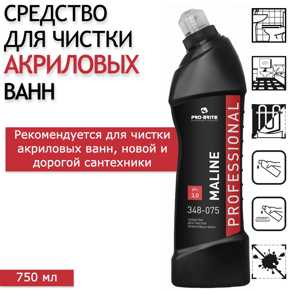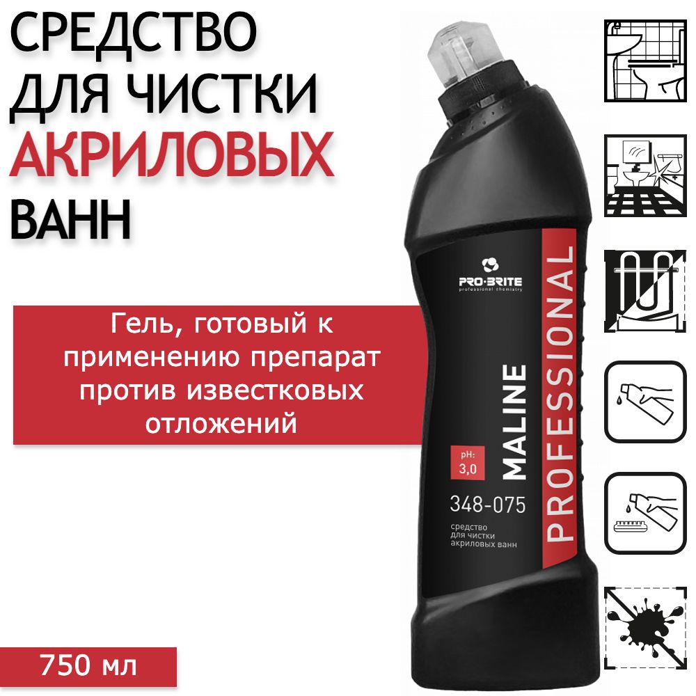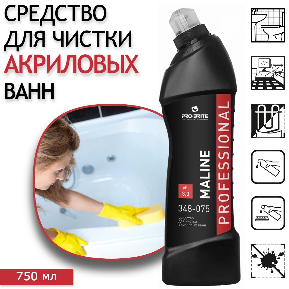 Моющее средство для чистки акриловых ванн / чистящее средство для ванной PRO-BRITE Maline, 750 мл - 1 шт