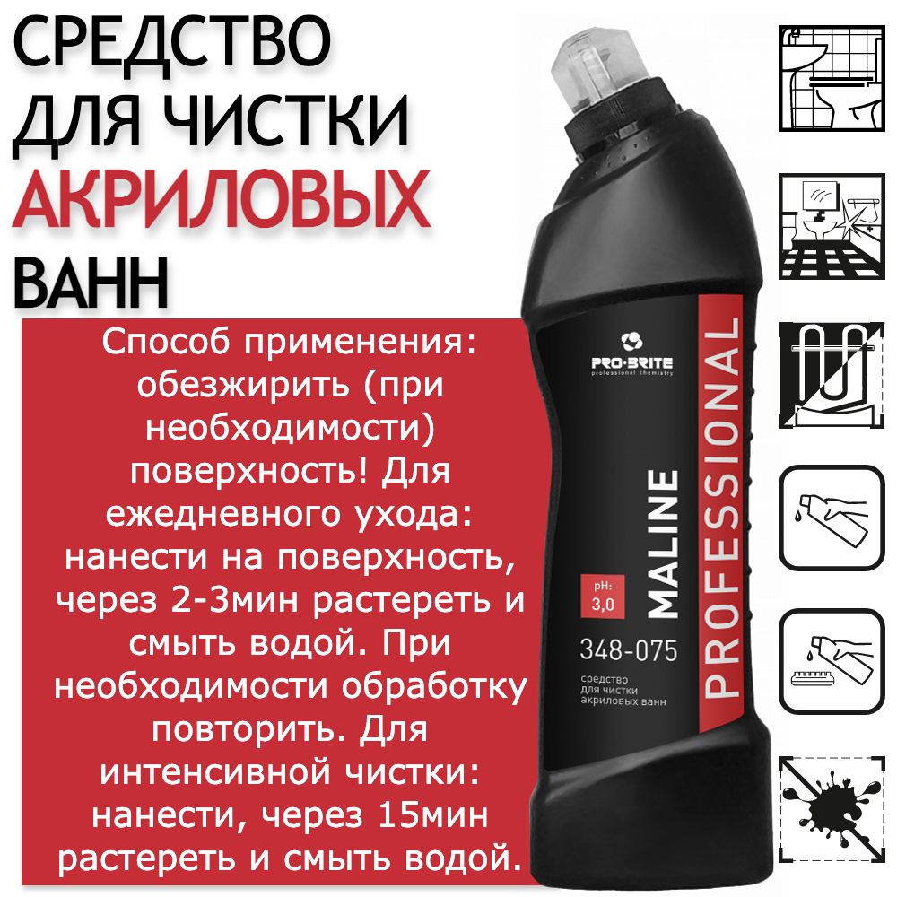 Описание: Моющее средство для чистки акриловых ванн / чистящее средство для ванной PRO-BRITE Maline
