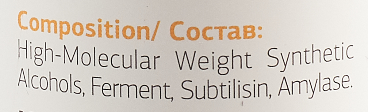 High-Molecular Weight Synthetic Alcohols, Ferment, Subtilisin, Amylase.