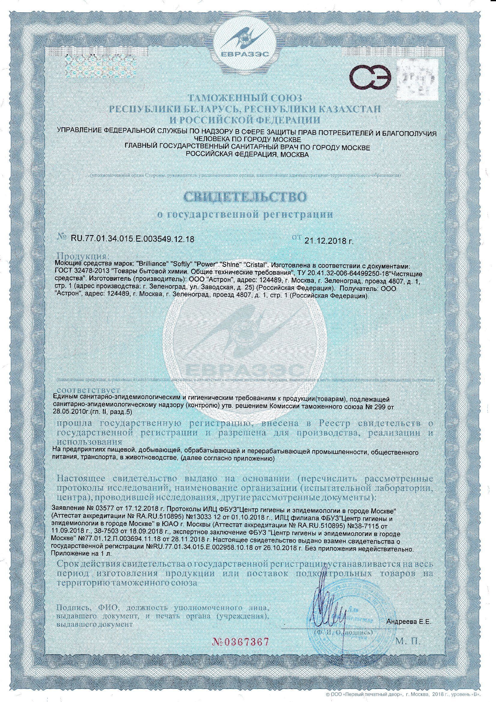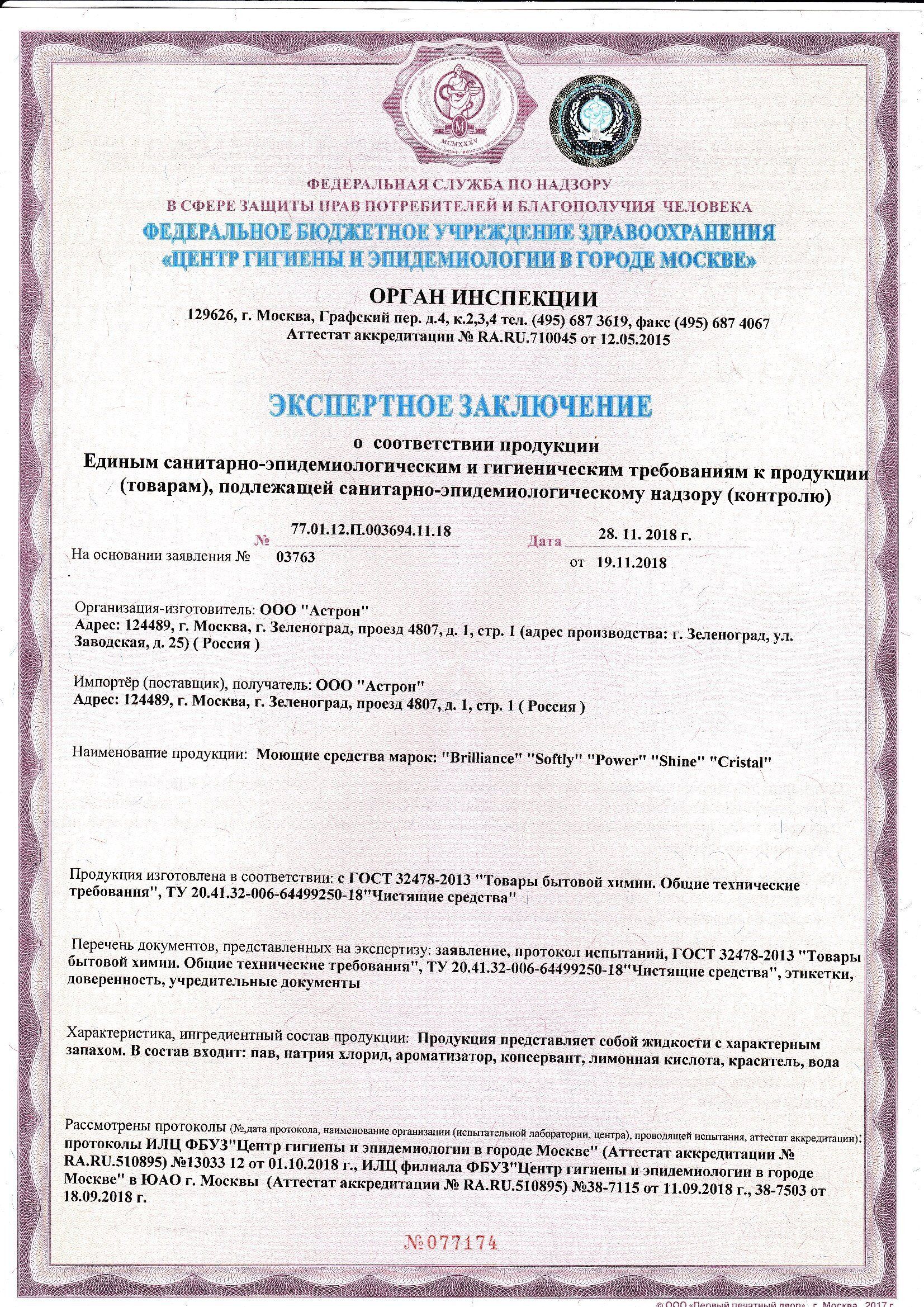 Вода, <5% изопропанол, нПАВ, комплексообразователь, ингибитор коррозии, аммиак водный, полиметилсилоксан.