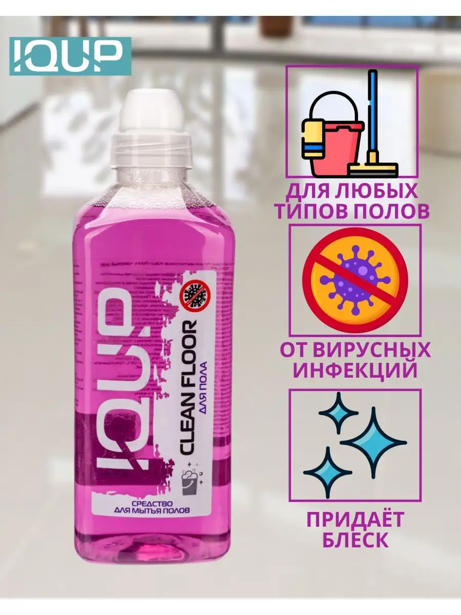 Описание: Средство для мытья полов IQUP Clean Floor, станет незаменимым помощником в уборке вашего дома. Универсальная концентрированная жидкость для мойки всех видов полов с твердым водостойким покрытием: керамическая плитка, керамогранит, кафель, натуральный камень, линолеум, обработанное дерево, паркет, виниловый ламинат. Подходит для влажной, ежедневной, генеральной уборки пола и других поверхностей: столов, стен, потолка. Также применяется для мойки кафельных стен в сан узлах, ванной комнате, в детских комнатах и учреждениях, гипермаркетах, бизнес-центрах, на объектах социальной и общественной сферы, в коммунальном хозяйстве. Также подойдет для уборки с помощью пылесоса с функцией влажной уборки или робота пылесоса. Прекрасно чистит бытовую технику, столешницы, шкафы и подоконники. Средство для туалета, ванной, гостиной, спальни, прихожей. Удаляет загрязнения, жирные пятна и придает блеск. Нейтрализует неприятные запахи, дезинфицирует, предотвращает размножение микроорганизмов, не разрушает защитный слой поверхности. Прекрасно чистит бытовую технику, столешницы, шкафы и подоконники. Не требует смывания, не оставляет разводов на поверхности, не раздражает кожу рук. Безопасно для домов с питомцами. В концентрированном виде используется как чистящее средство для удаления стойких загрязнений с любых твердых поверхностей. Низкое пенообразование, не требует дополнительного смывания. Инструкция по применению: развести 50 мл средства в 5 л чистой воды и вымыть пол обычным способом, вытереть насухо. Для наилучшего результата сильнозагрязненные места или отдельные пятна следует предварительно протереть неразбавленным раствором с помощью губки. Для мытья деревянных полов, паркета и ламината средство применять только разбавленным. Новинки для дома, химия для уборки, канистра пластиковая, защитная форма 5 литров. Универсальное моющее средство для мытья полов – отличный подарок на любой праздник маме, жене, папе, мужу, сестре, подруге и другу. Наши товары можно приобрести со скидкой. Выгодный объём в 5 литровой канистре - экономит Ваше время и деньги. Дорогие покупатели, покупая универсальное чистящее средство IQUP Clean Floor, вы делаете самый оптимальный выбор по соотношению цены и качества! С любовью, команда IQUP