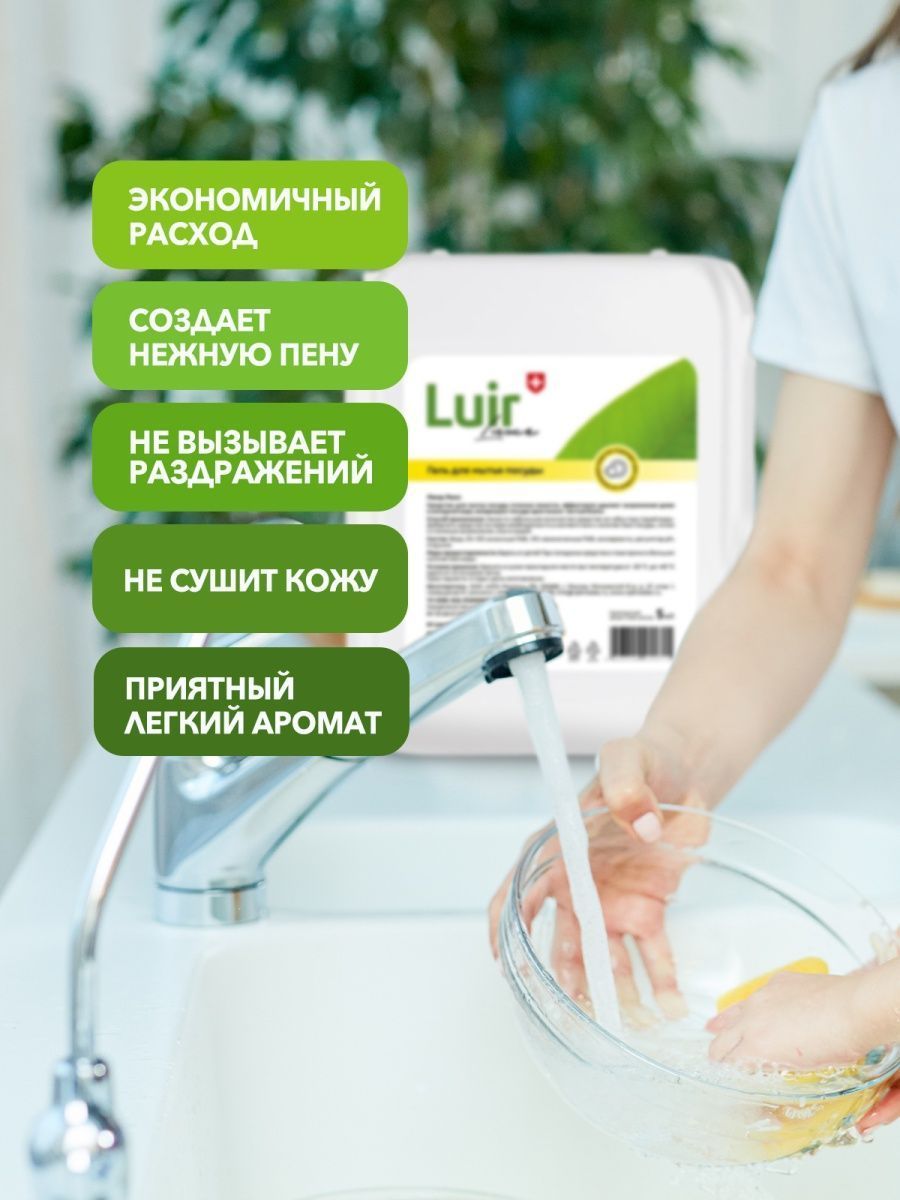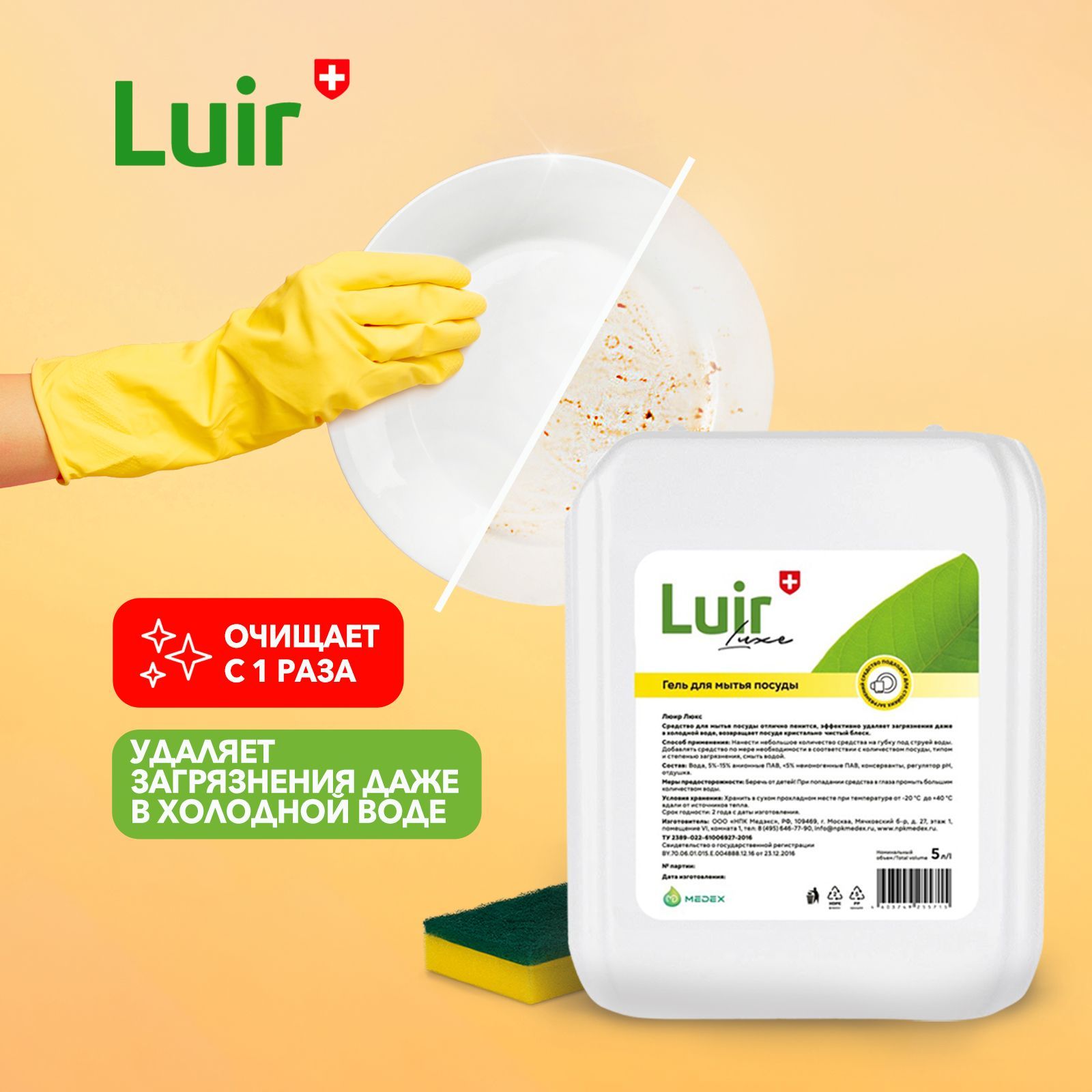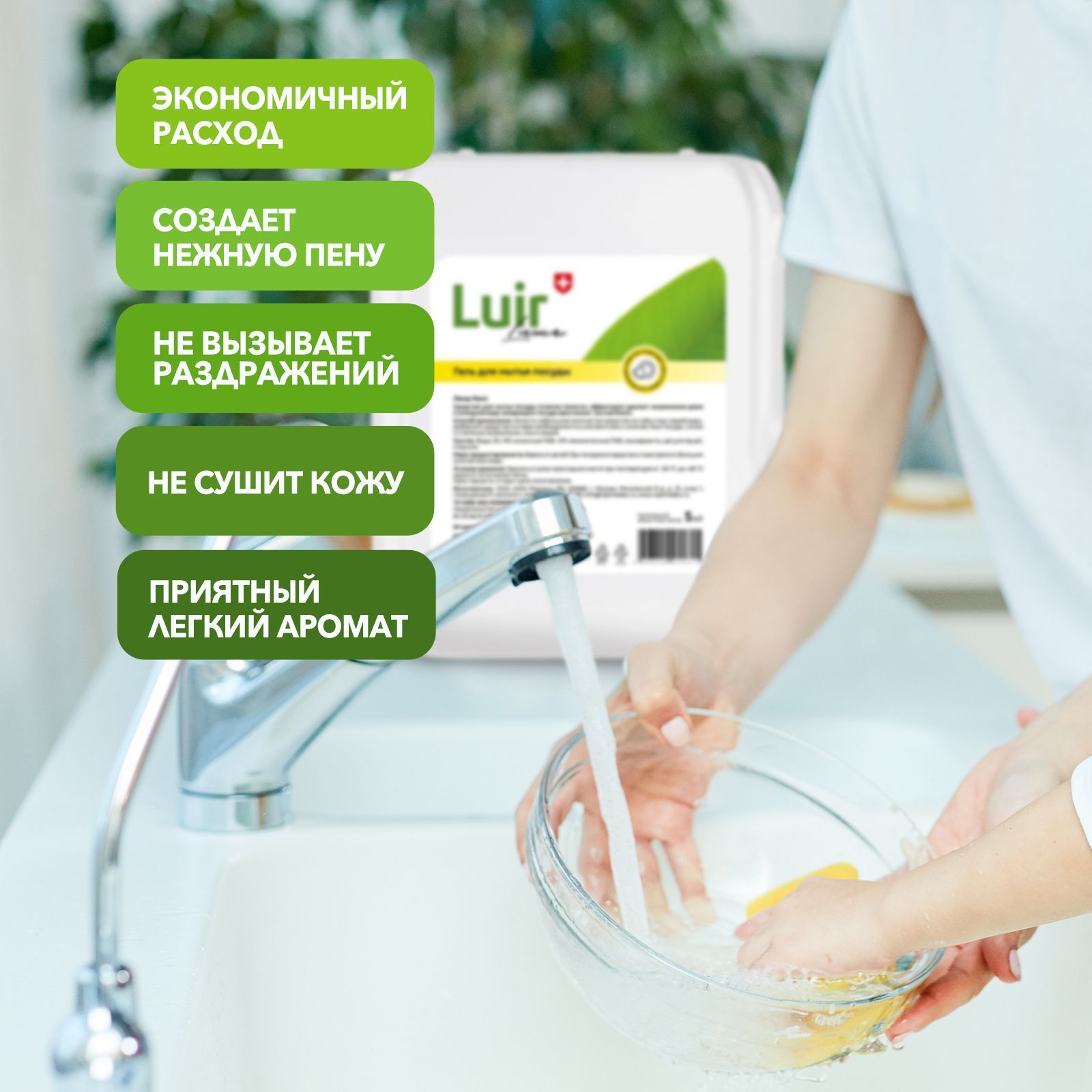 Моющее средство для посуды LUIR luxe, Люир Люкс гель для мыться посуды с антибактериальным, гипоаллергенным эффектом, 5 литров