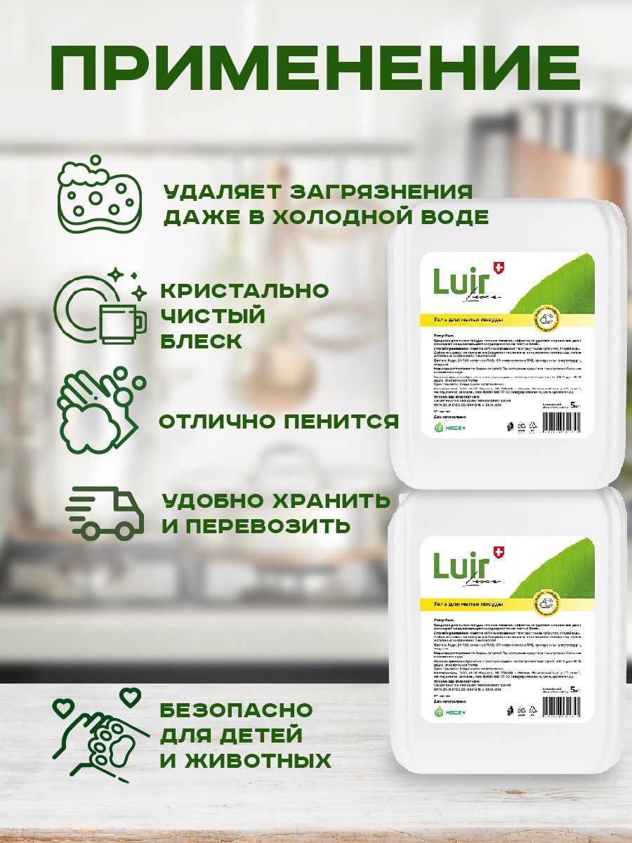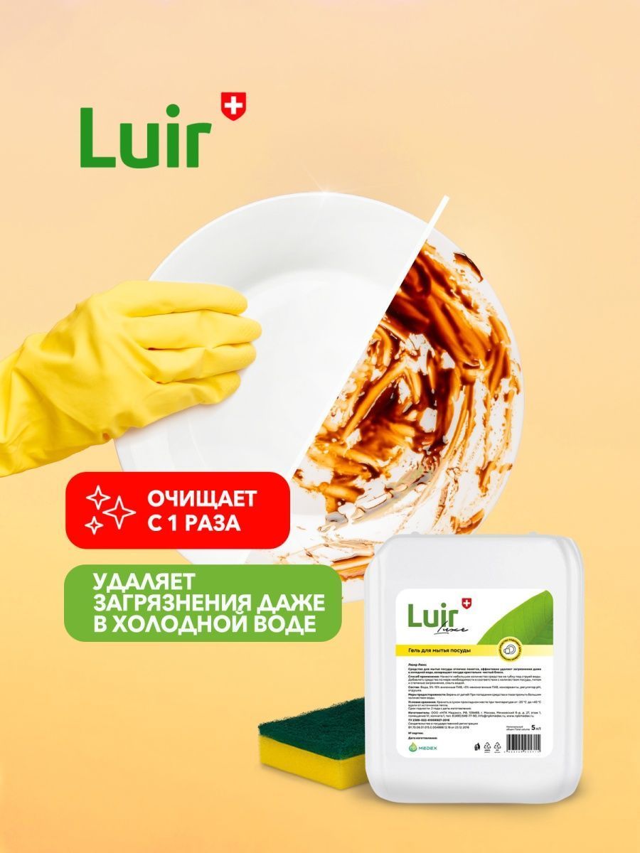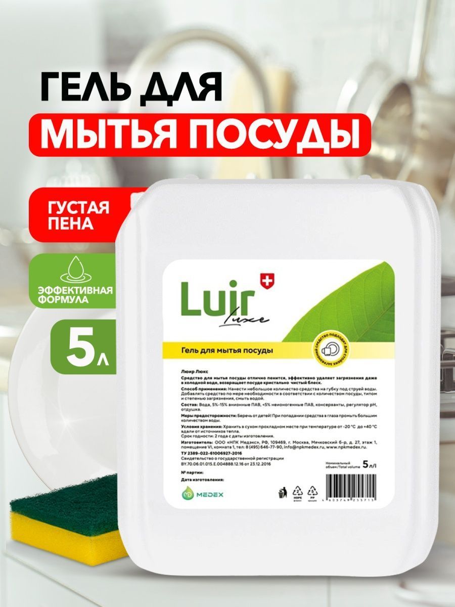 Моющее средство для посуды LUIR luxe, Люир Люкс гель для мыться посуды с антибактериальным, гипоаллергенным эффектом, 5 литров