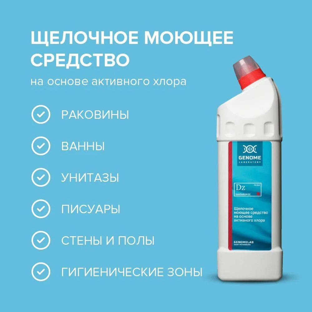Гелеобразное моющее щелочное средство с активным хлором (гипохлорит натрия) для сантехники Sanitarium DZ