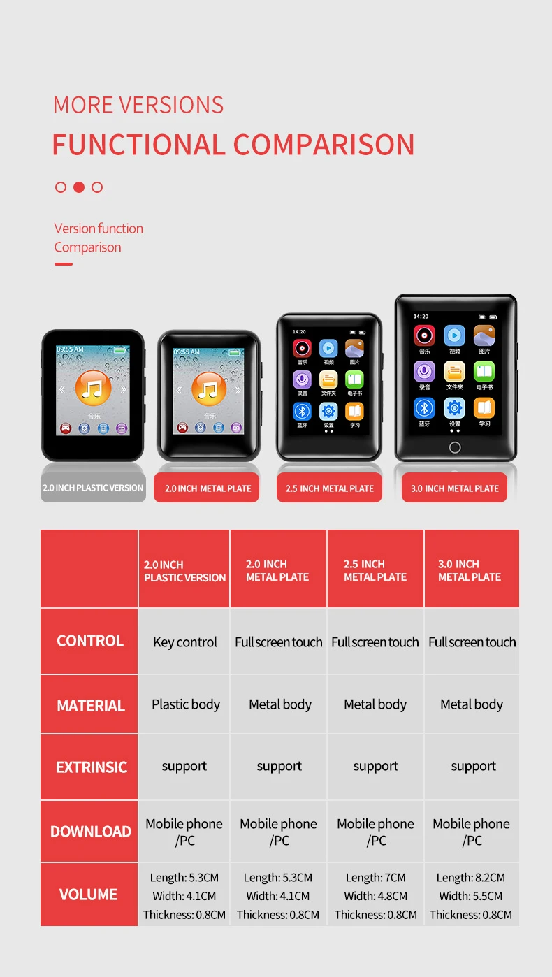 Mp3-плеер 3,0 дюйма, Bluetooth 5,0