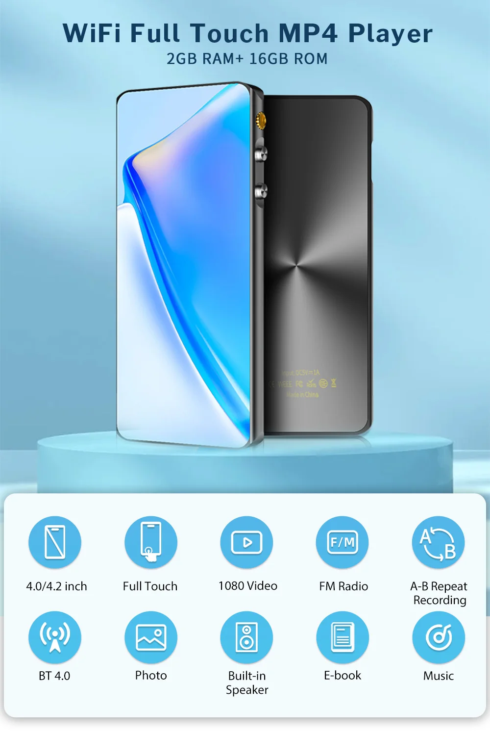 Function 2 Bluetooth WiFi Full Touch Screen MP4/MP3 Player