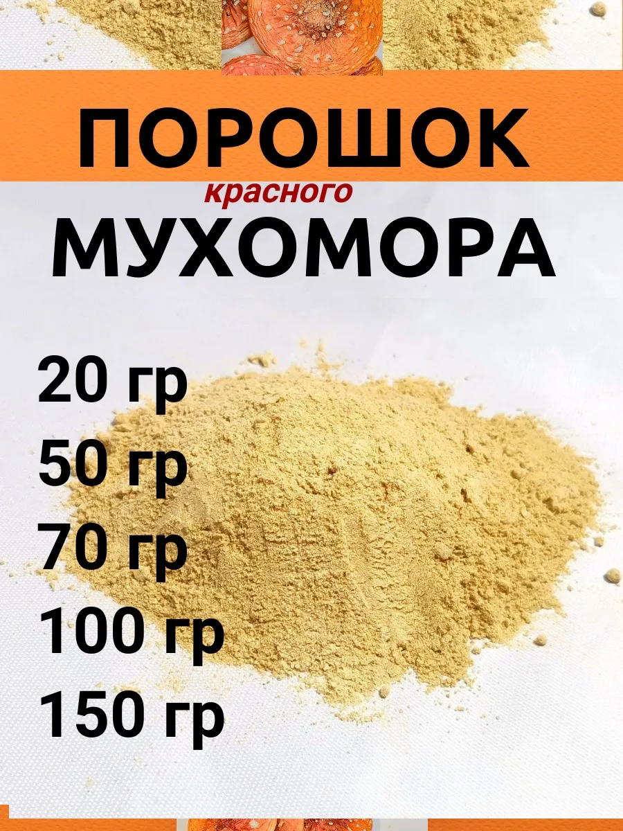 Мухомор красный сушеный ПОРОШОК для Микродозинга молотый, красные шляпки, перемол-пудра