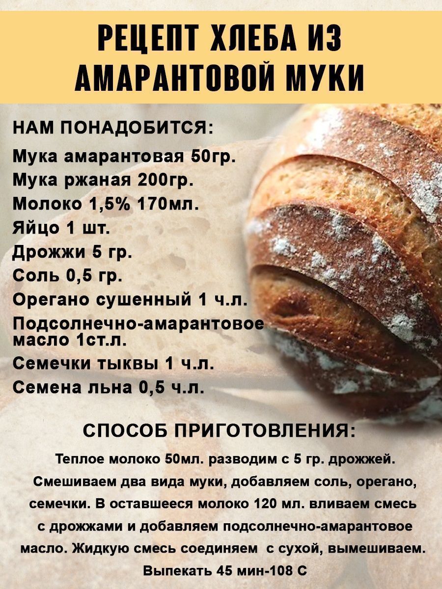 При изготовлении выпечки по своим рецептам, нужно добавлять амарантовую муку до 25% от общего объема муки .Универсальная амарантовая мука может применяться в качестве добавки в различных диетических блюдах , в составе панировки и фарша мясных и рыбных блюд. Здоровая и вкусная еда , полезные завтраки с мукой " Русская олива" .