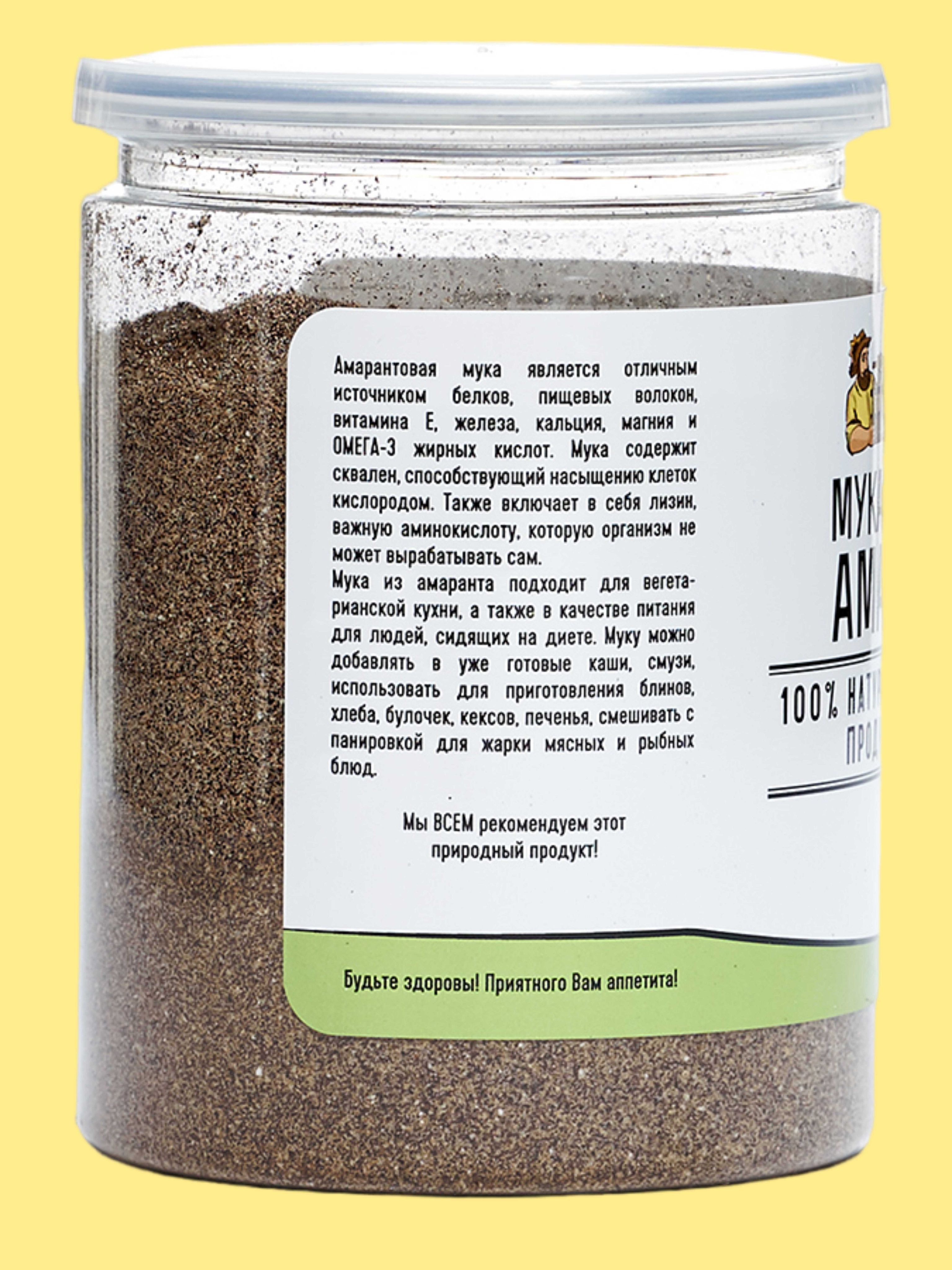В амарантовой муке содержится редкий элемент — сквален. Он снижает уровень холестерина  и оказывает антиоксидантный эффект на весь организм. Амарантовая мука не содержит глютена. Кроме того наш продукт  богат клетчаткой, железом, магнием, а также витаминами A, E, и C. Мука подходит для вегетарианской кухни, а также в качестве питания для людей, сидящих на диете. Наиболее часто мука используется в выпечке, которая на ее основе получается ароматной и пышной. Добавляют муку из амаранта в подливы, котлеты, овощные блюда, в качестве панировочной массы.  Амарантовая мука не перестает нас удивлять и в косметической сфере. Мука содержит дубильные вещества, поэтому она отлично подойдет для приготовления косметических масок. Используя их регулярно, стопроцентно получите гарантированный результат. Кожа разгладится и станет более упругой с равномерным оттенком. Амарантовая мука упакована в удобную баночку объемом 200, 350, 500 гр. Мы предлагаем на наш продукт долголетия самую выгодную цену. Область применения обширна, расходуется быстро, поэтому будет прекрасным презентом всем родным и близким. Своим легким ореховым вкусом, амарантовая мука  дополнит множество кулинарных блюд, никто не останется равнодушным.