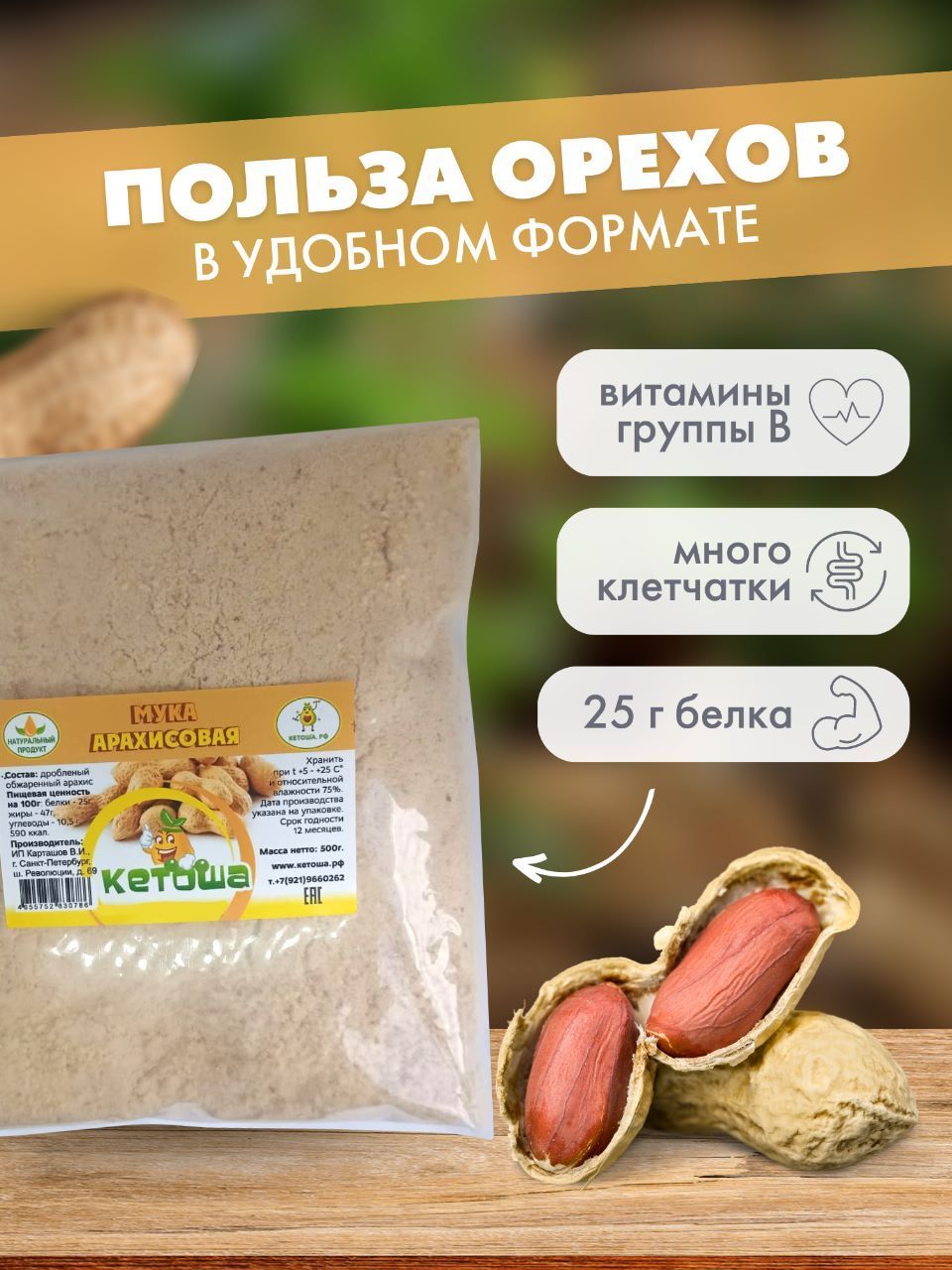 Мука арахисовая обжаренная небланшированная, 500 гр