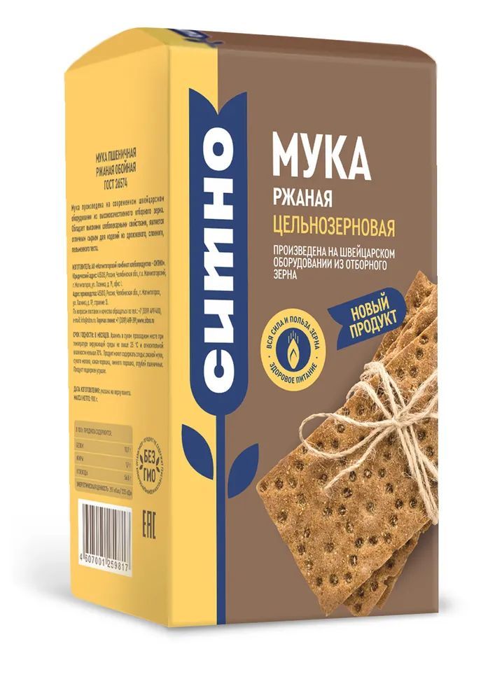 Попробуйте другую продукцию СИТНО : Мука "Цельнозерновая" ржаная  0,9 кгМука "Цельнозерновая" пшеничная Ситно 0,9 кгКрупа манная СИТНО марка ТМакароны СИТНО группы А, Рожки 3 кг