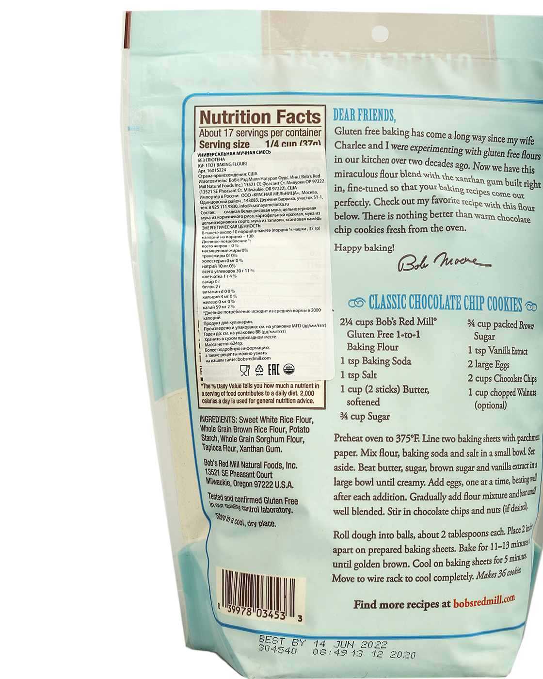 Сделать вкусную выпечку без глютена - совсем несложно с помощью смеси муки для выпечки без глютена 1-к-1. Просто следуйте любому из ваших любимых рецептов выпечки и замените пшеничную муку этой простой в использовании мучной смесью. Эта универсальная мука, не содержащая глютен, идеально подходит для создания выпечки с потрясающим вкусом и текстурой - никаких дополнительных специальных ингредиентов или специальных рецептов не требуется, что делает ее одной из лучших для выпечки без глютена. Эта мука идеально подходит для печенья, тортов, пирожных, кексов и многого другого!Что делает эту смесь муки без глютена такой превосходной? Мы измеряем и смешиваем высококачественные ингредиенты, такие как сладкий рис и мука из коричневого риса, картофельный крахмал, мука из сорго, мука из тапиоки и ксантановая камедь, чтобы создать смесь, которая прекрасно работает в рецептах, требующих разрыхлителя или пищевой соды. Хотите испечь хлеб без глютена? Хотя наша безглютеновая мука для выпечки 1-к-1 и не предназначена для дрожжевого теста, но вы можете ее использовать для выпечки без глютена в своих любимых рецептах!