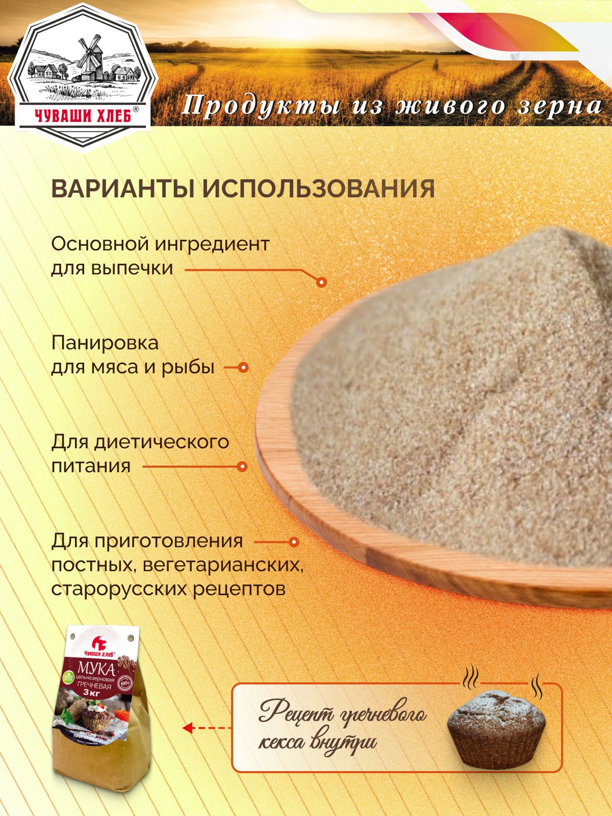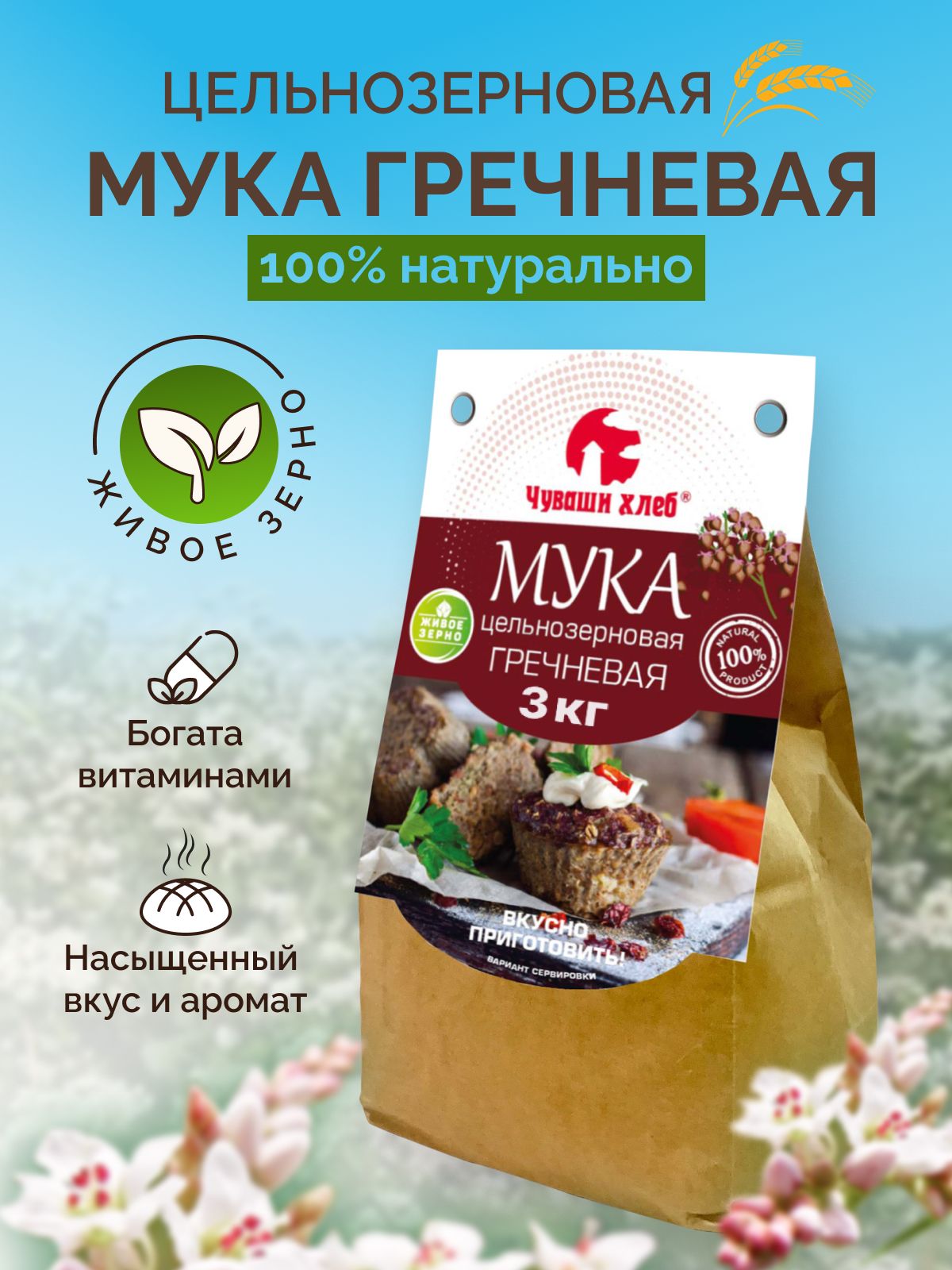 Мука гречневая цельнозерновая, цельносмолотая, для диетического, правильного питания, здоровый Образ Жизни, 3 кг