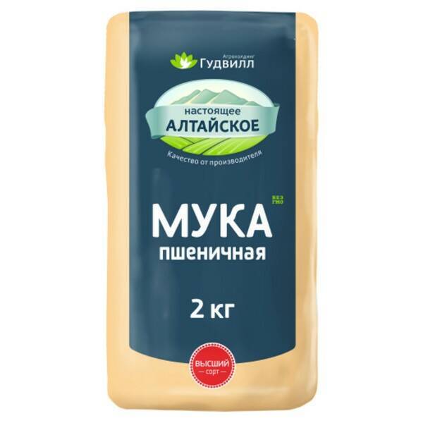 Описание: Пшеничная мука высшего сорта Гудвилл подойдет для всех видов выпечки – от булочек до пиццы. Тонкий помол и высокая степень аэрации в процессе помола позволяют получать пышное и воздушное тесто.