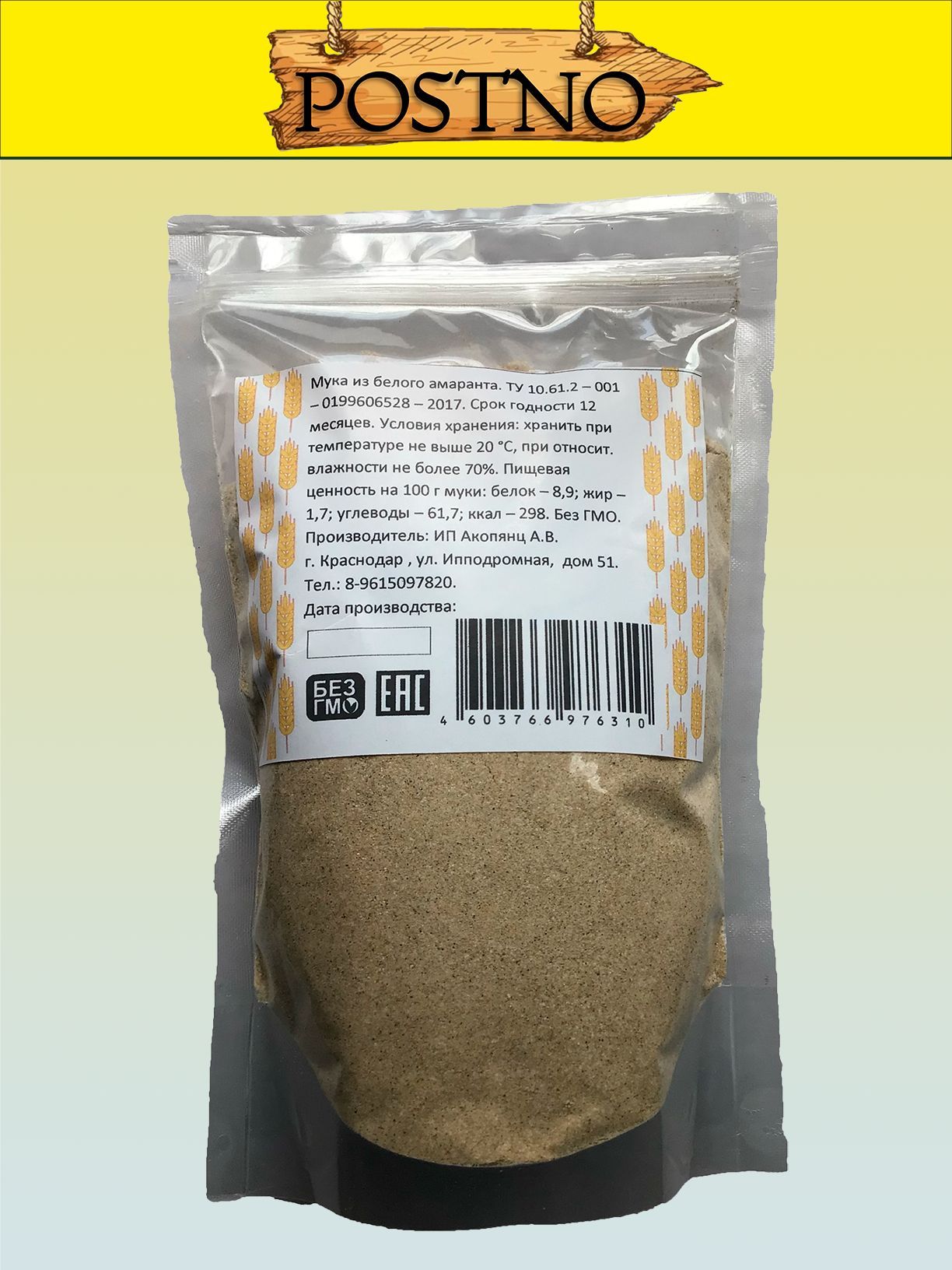 Мука из белого амаранта 500 г дой-пак