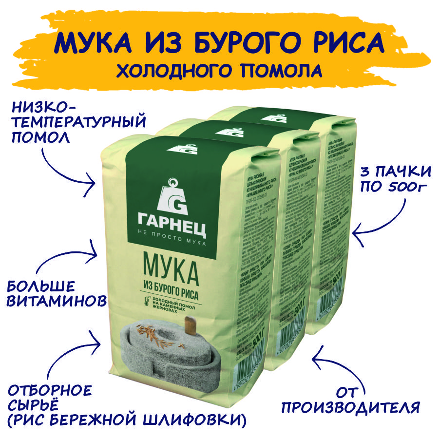 Мука из бурого риса Гарнец (цельнозерновая рисовая) 3 шт по 500 гр