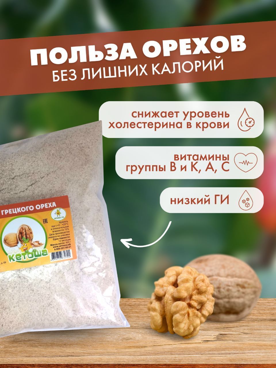 Мука из грецкого ореха, 500 г