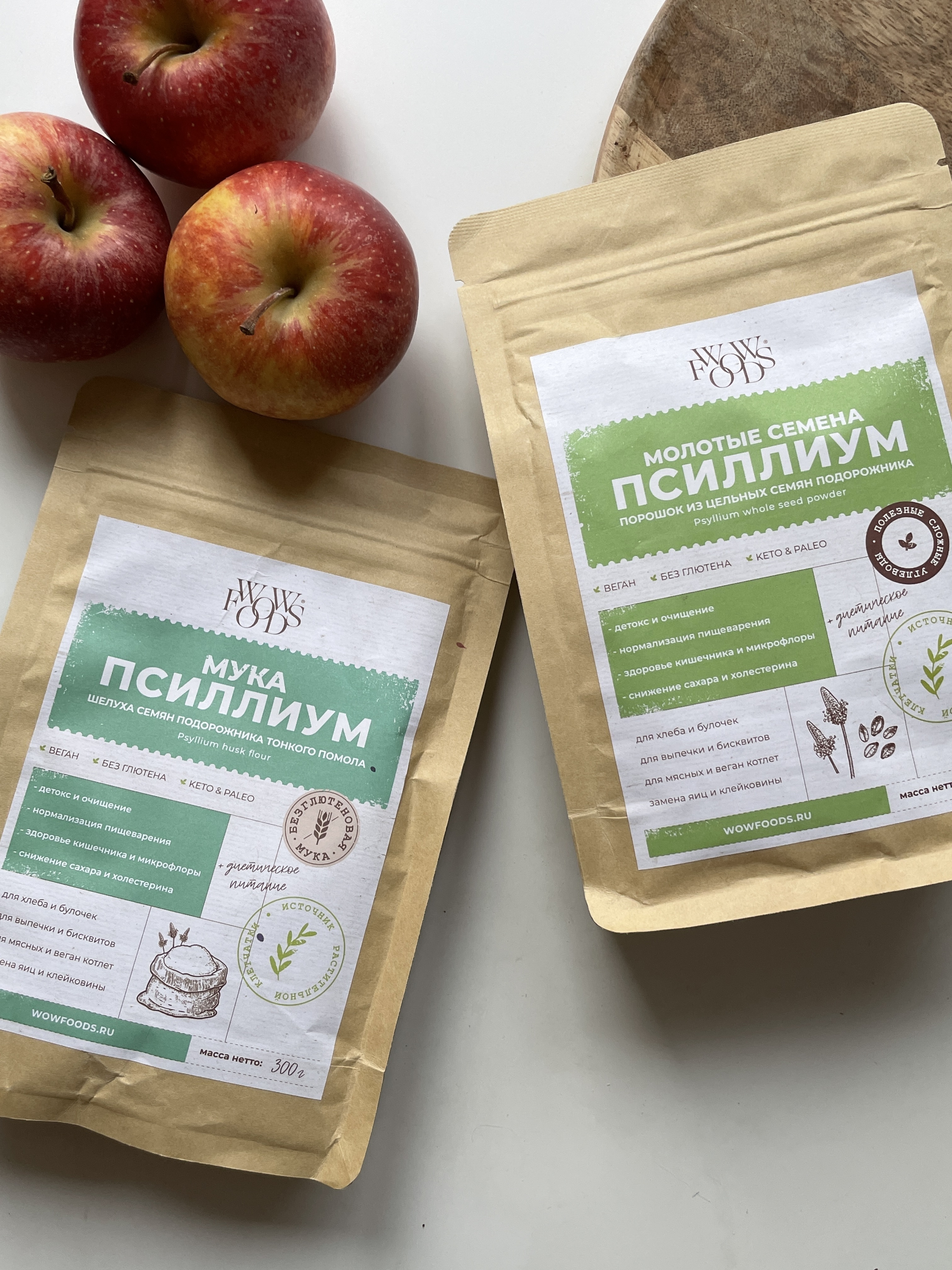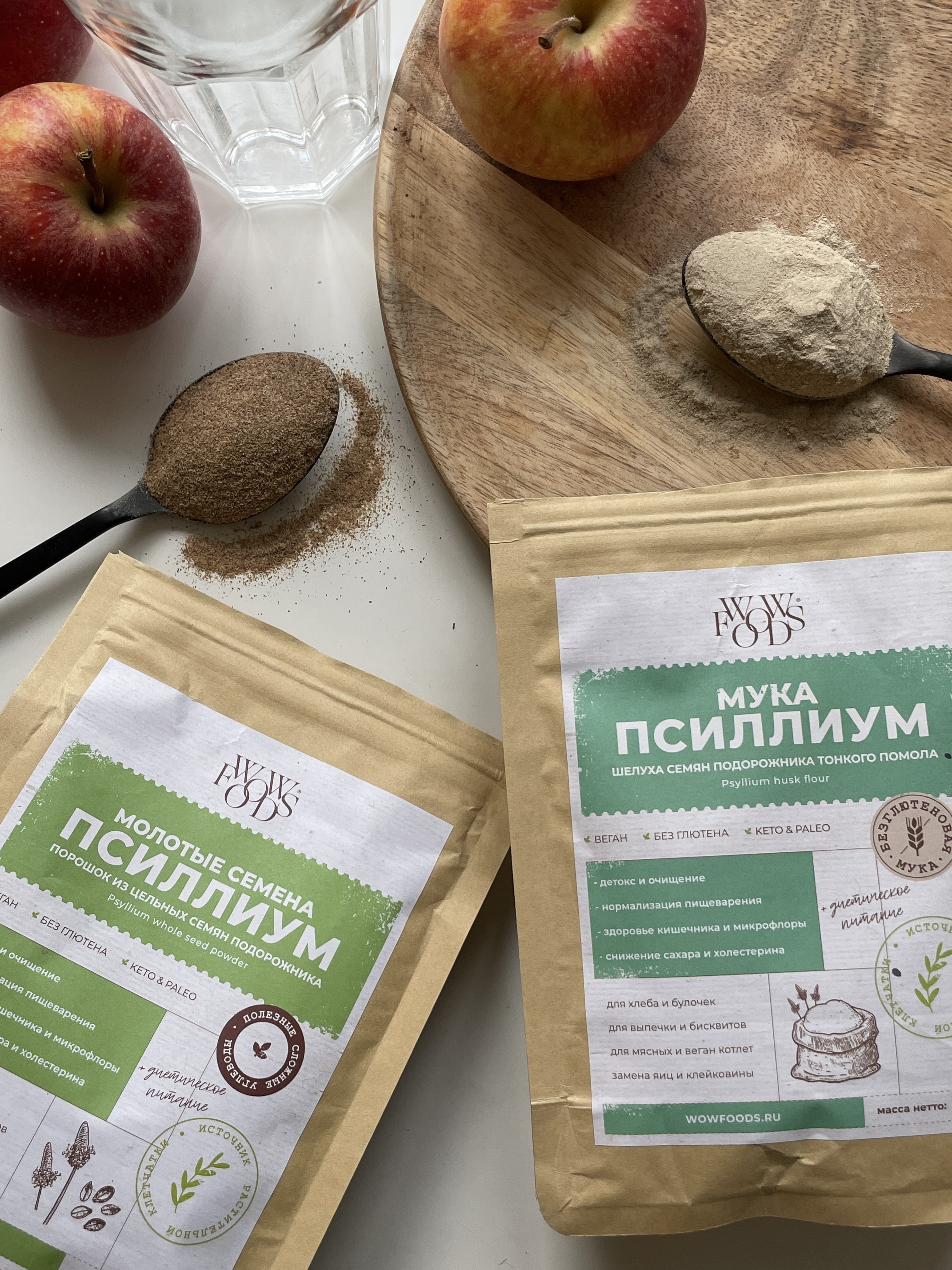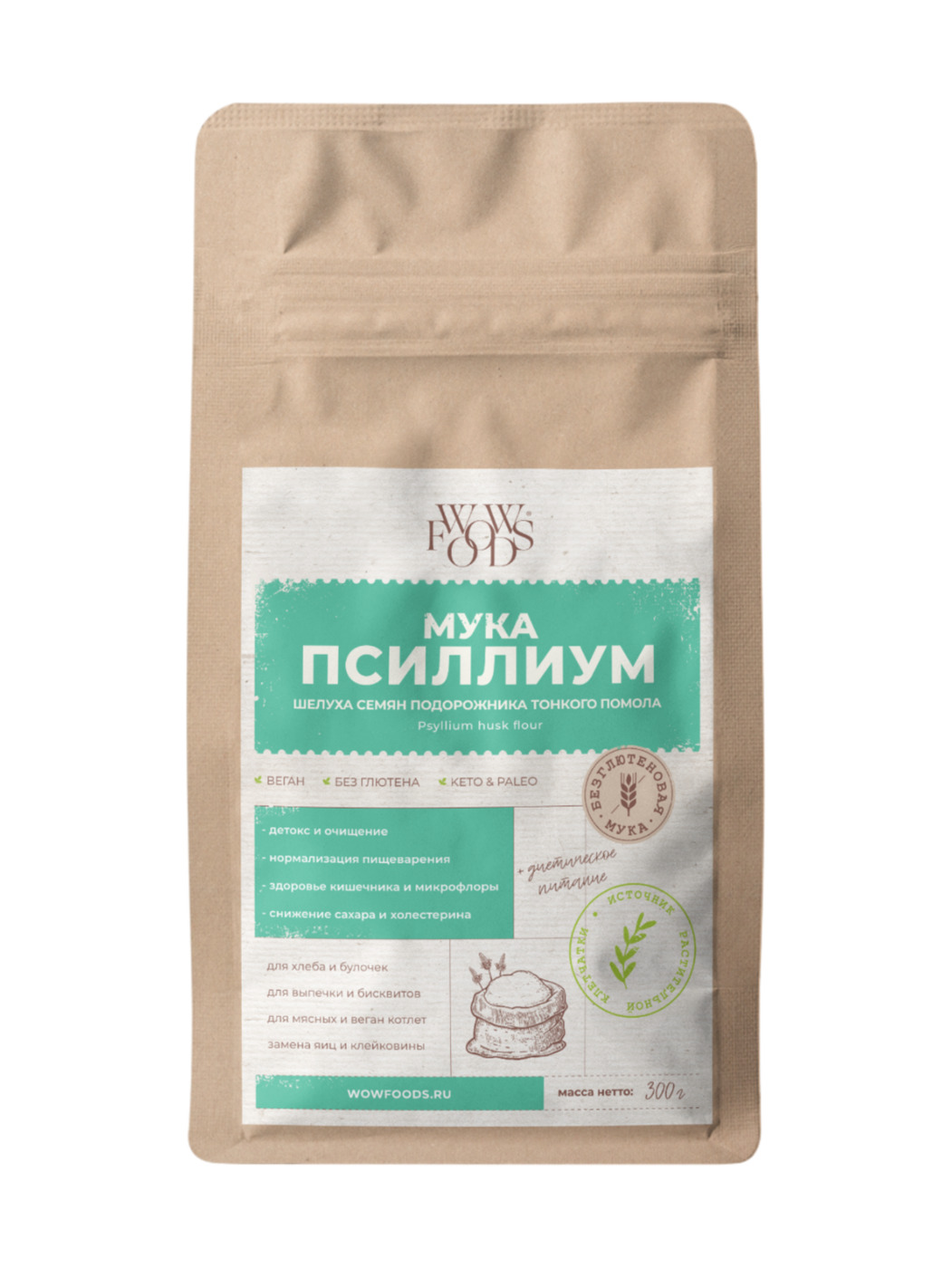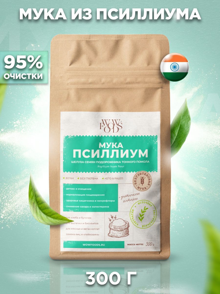 Мука из псиллиума WOWFOODS тонкого помола, шелуха семян подорожника, клетчатка 300 г