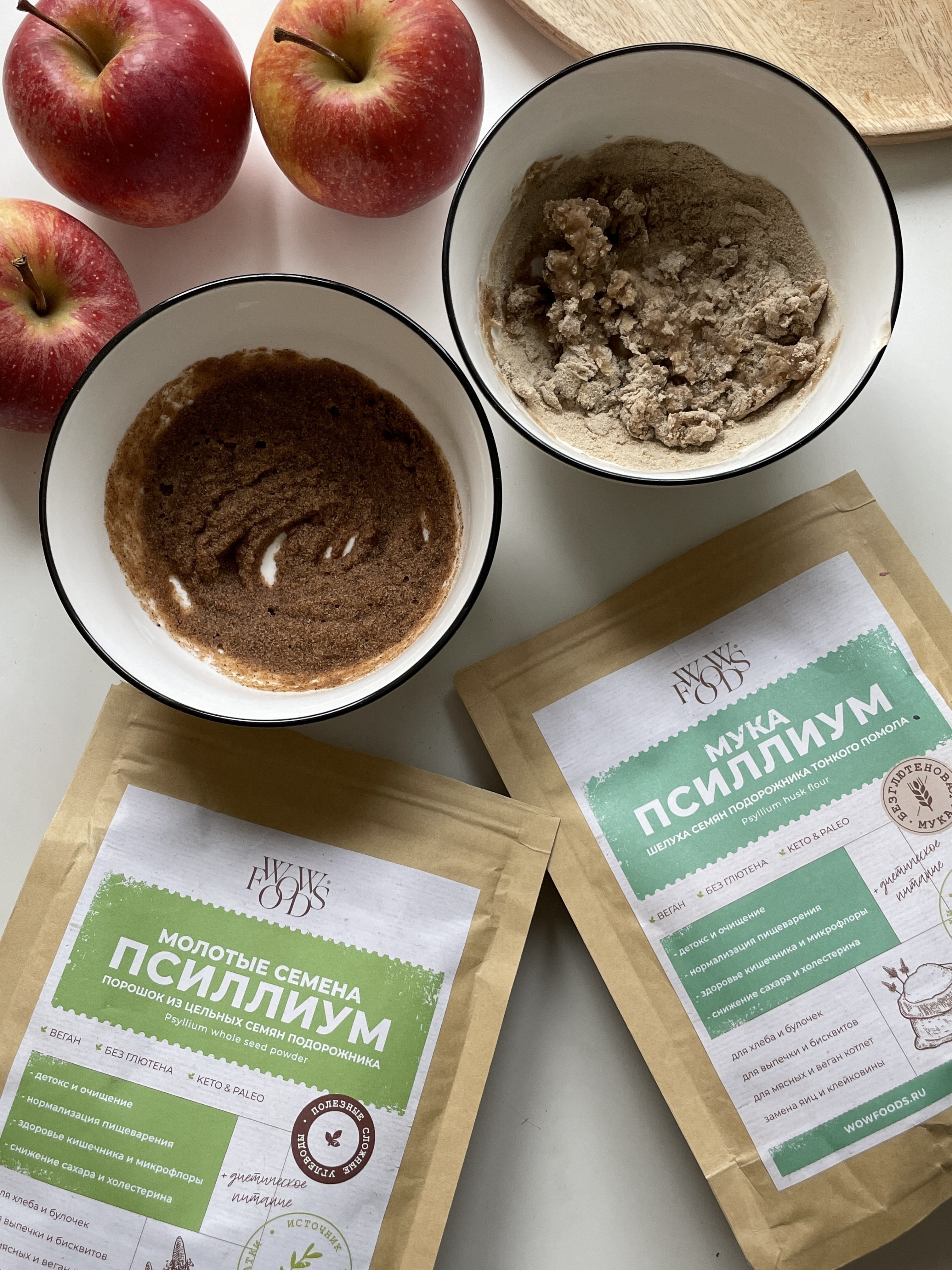 • При использовании муки псиллиума необходимо увеличить количество жидкости в рецепте и дать настояться 5-7 минут, чтобы псиллиум впитал влагу. Сочетается с другими видами муки, придает тесту воздушную бисквитную структуру, используется для веган, бездрожжевой и безглютеновой выпечки. Подходит для приготовления соусов и подлив; добавления в фарш, веганские и овощные, чечевичные котлеты; веган-йогурты, напитки, коктейли, смузи и боулы. Обязательно принимать с водой не менее 250 мл.