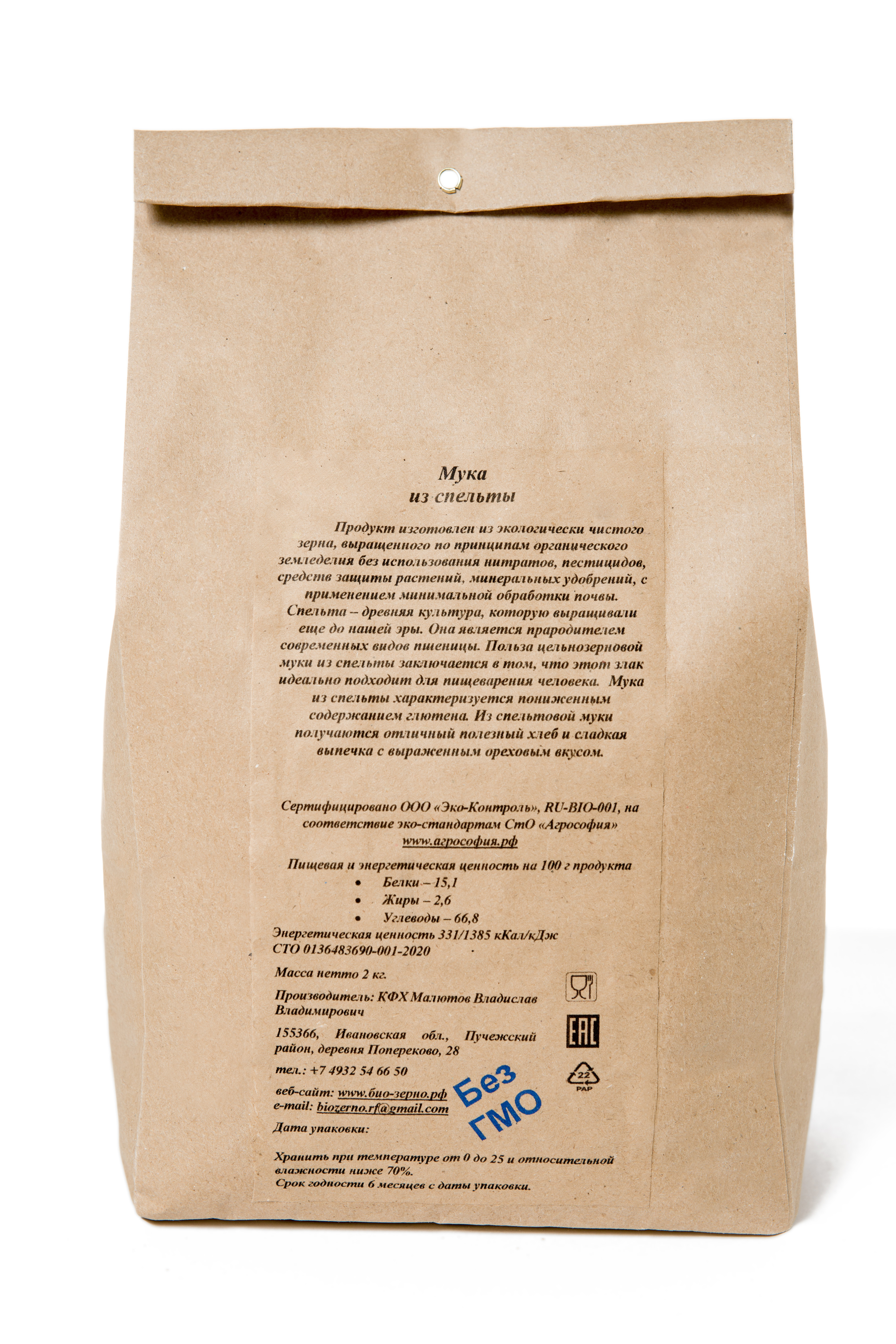 Мука из спельты цельнозерновая БиоЗерно органическая 2 кг