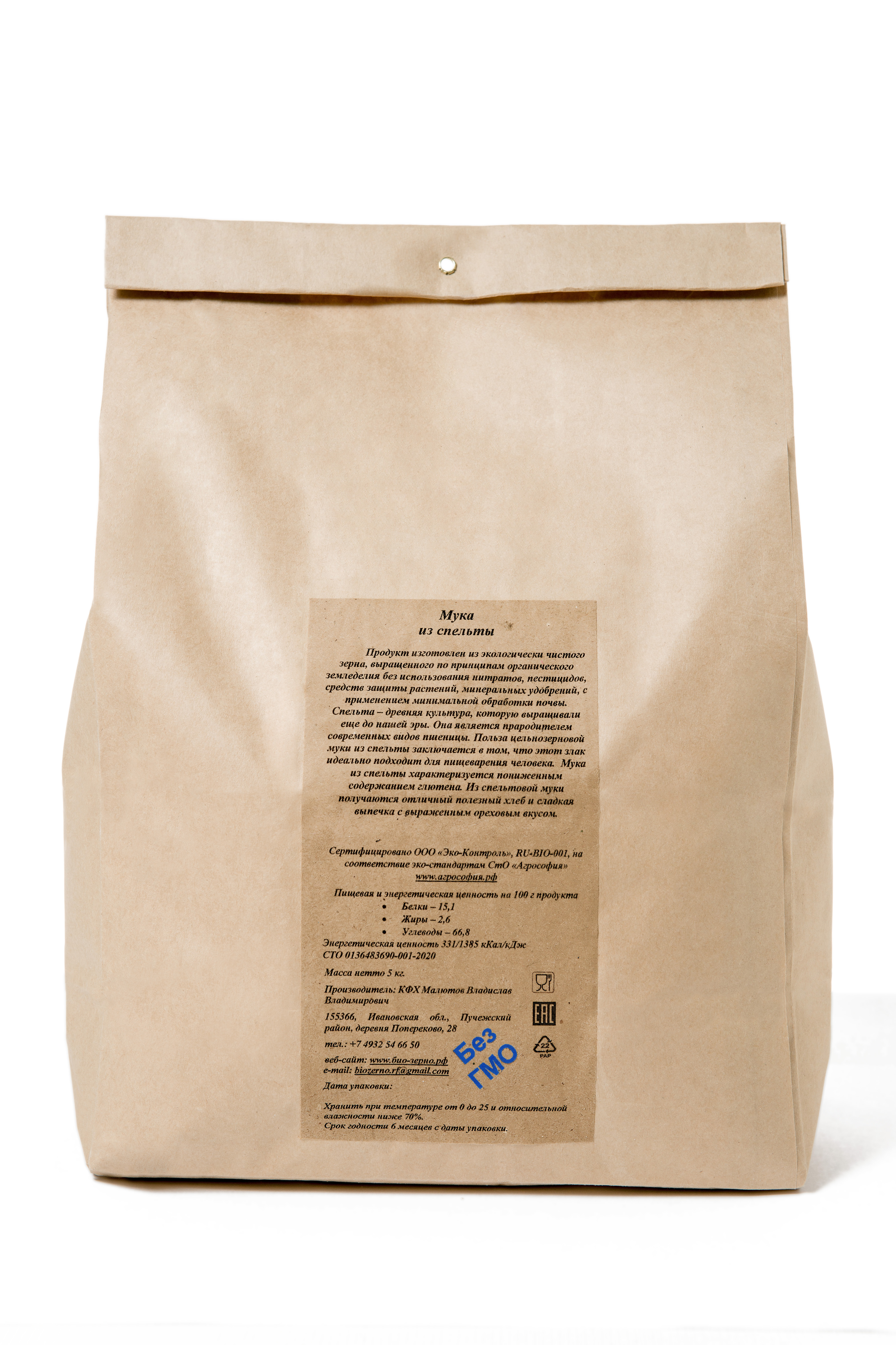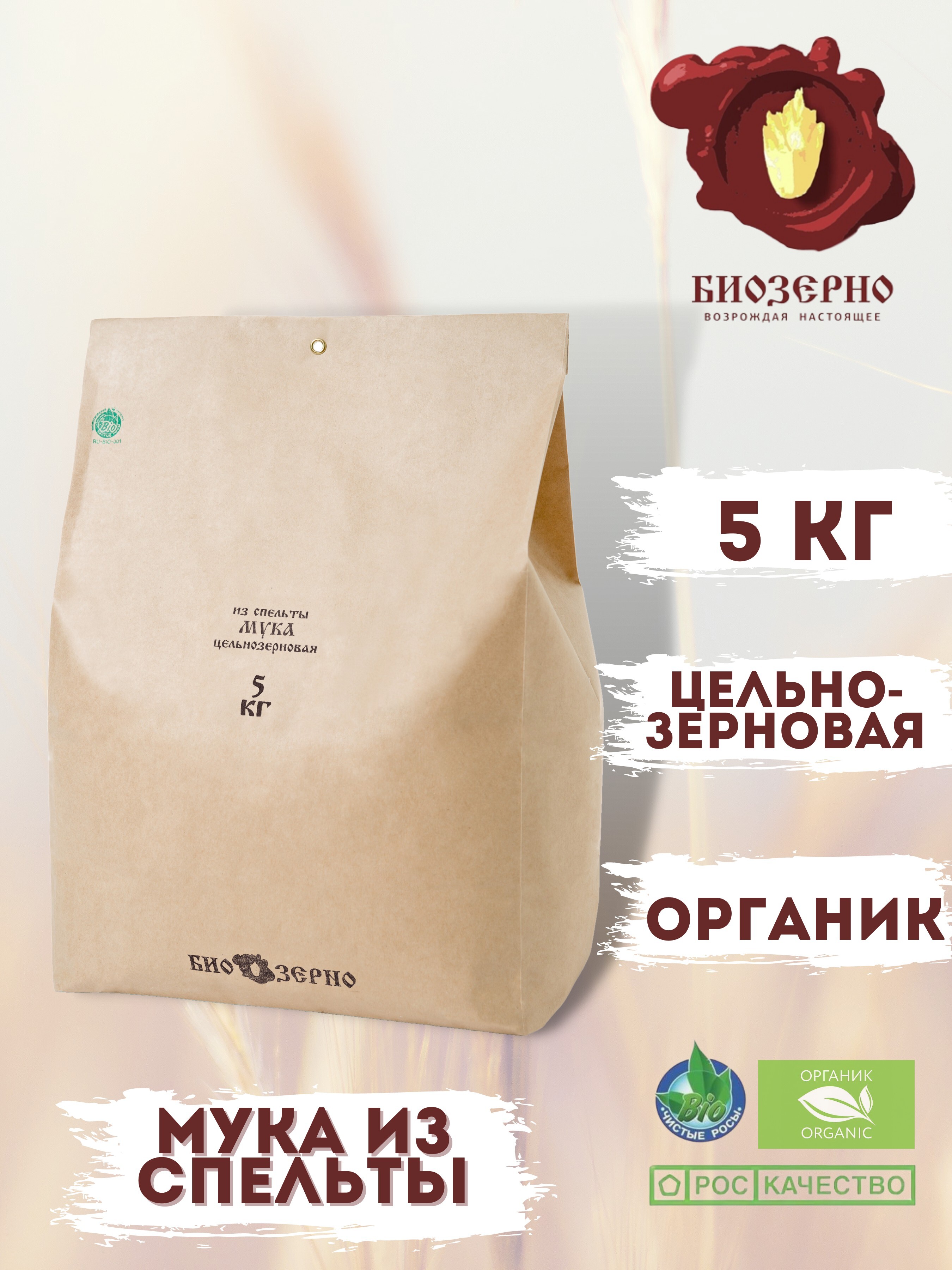 Мука из спельты цельнозерновая БиоЗерно органическая 5 кг