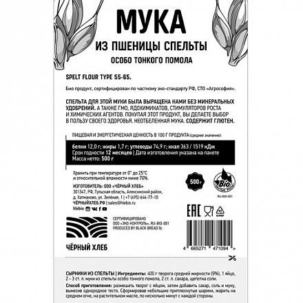 Мука из спельты особо тонкого помола, Черный хлеб, 500 г