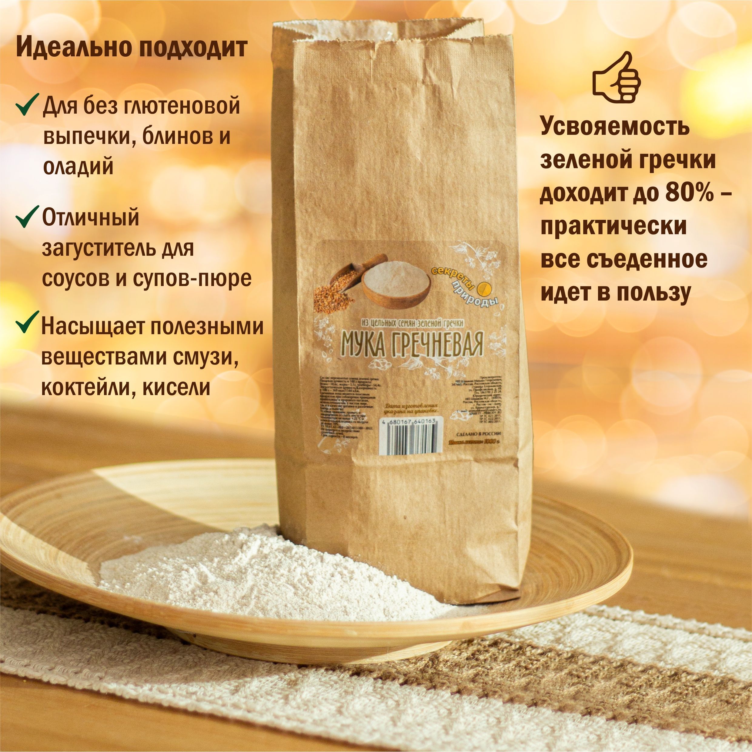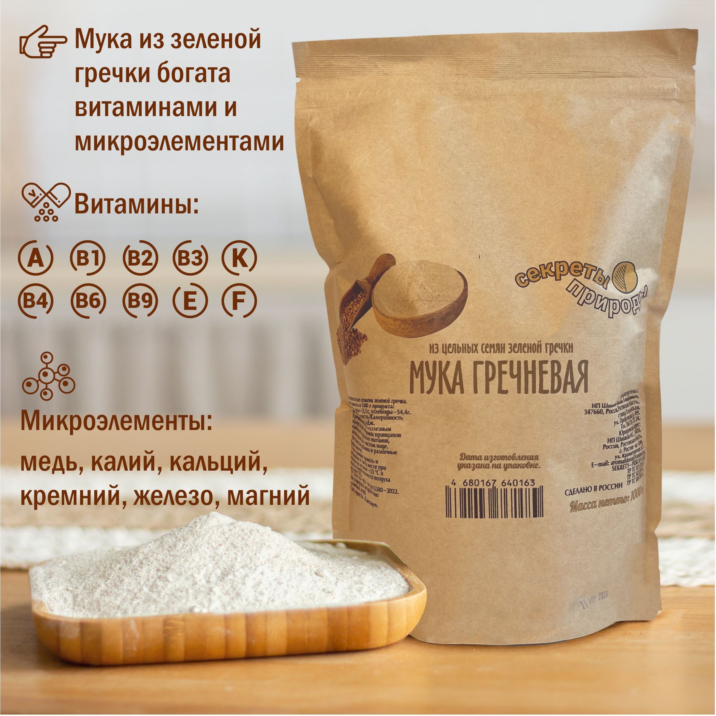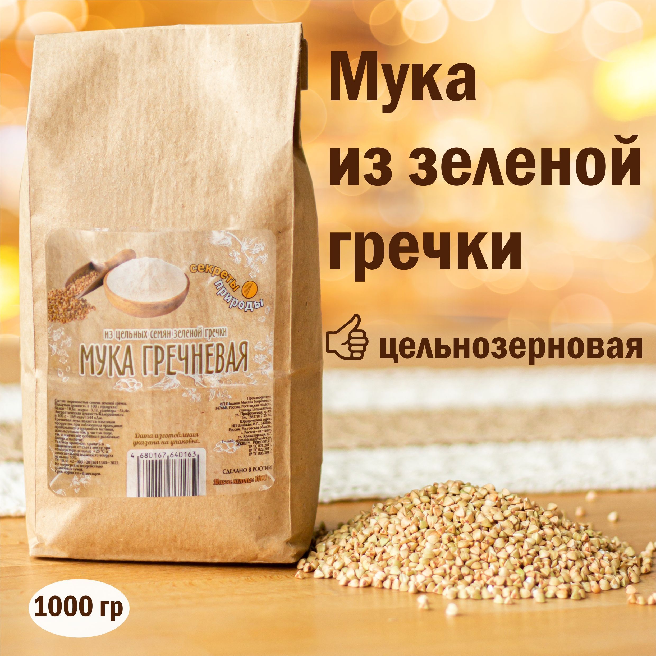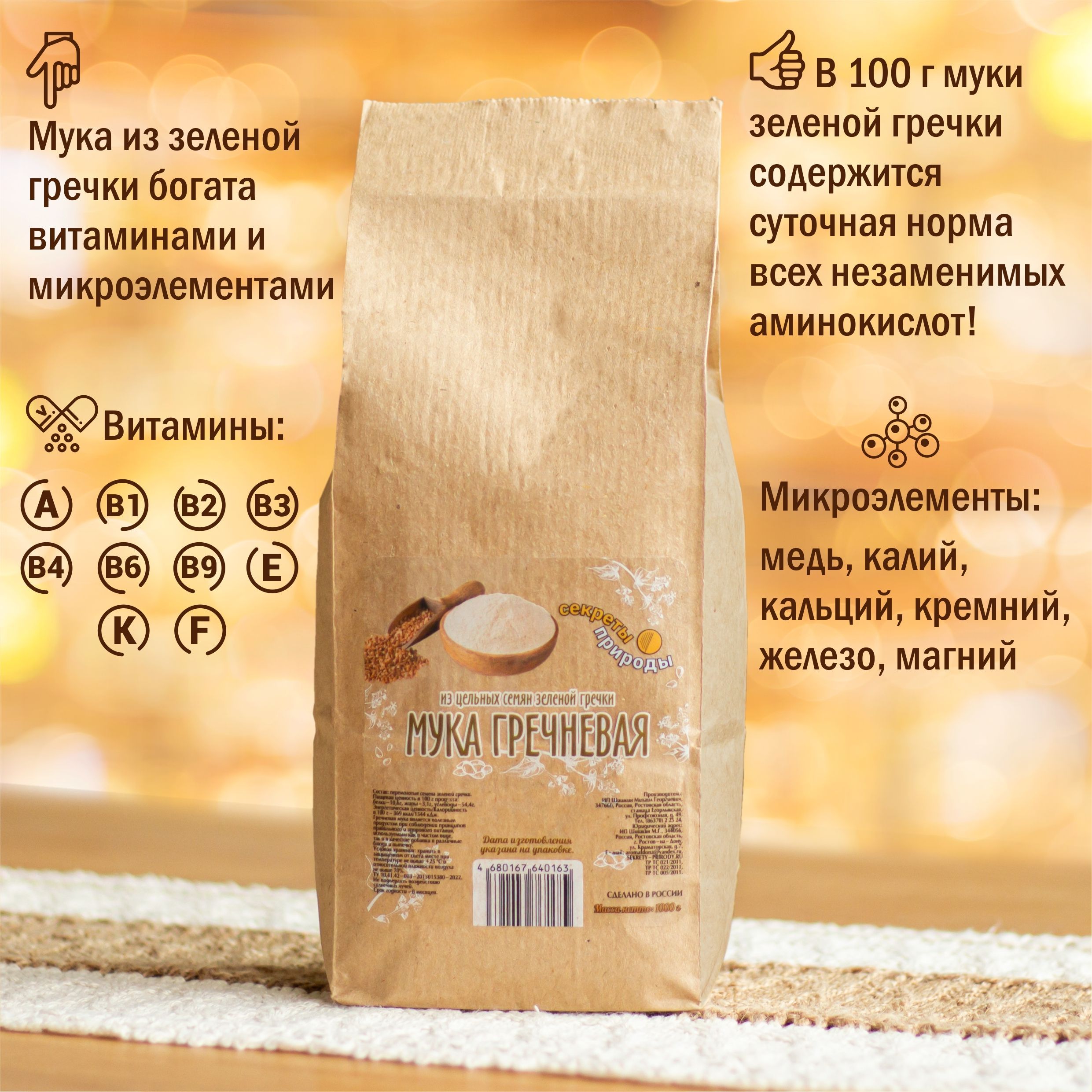 Мука из зеленой гречки, 1 кг / Без Глютена / Цельнозерновая мука высший сорт Секреты Природы