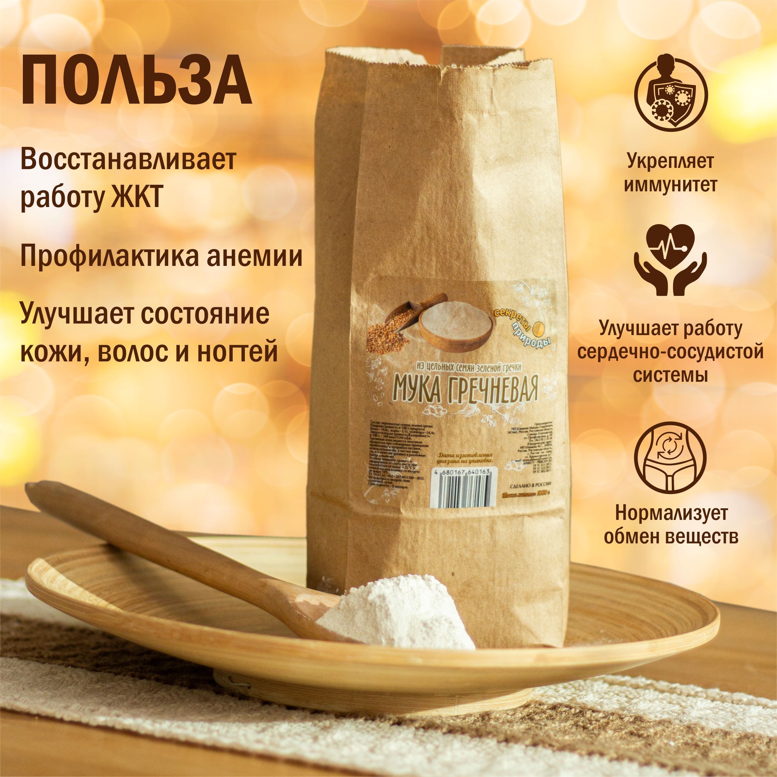 Продукт легко усваивается организмом, обеспечивая его необходимой энергией, белками и полезными веществами. Регулярное его употребление является профилактикой анемии, сердечно-сосудистых заболеваний. Мука из зеленой гречки идеально подходит для людей, соблюдающих безглютеновую диету, направленную на снижение веса.Польза в каждой ложке!?Продукт почти не имеет противопоказаний. Исключения составляют индивидуальная непереносимость и повышенная свертываемость крови.
