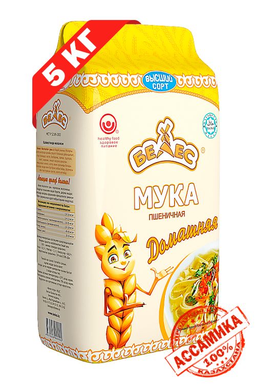 Мука казахстанская Белес Домашняя 5 кг, высший сорт