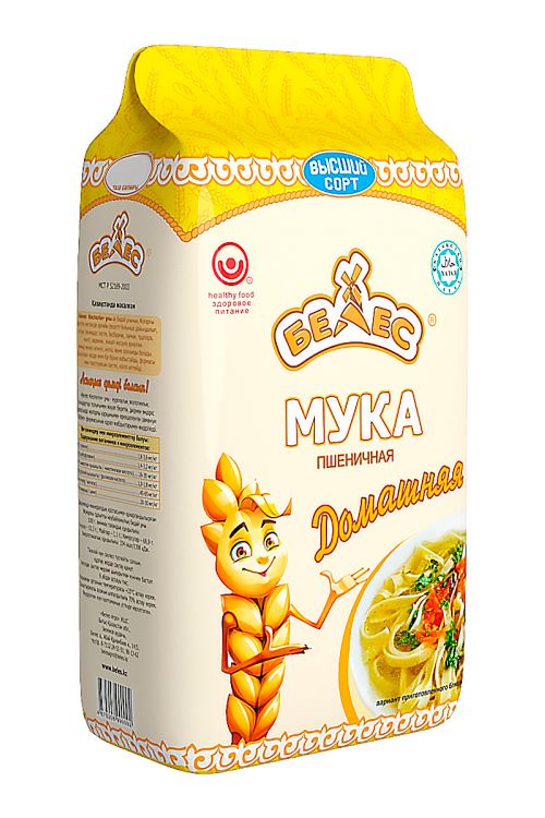 Описание: Казахстанская мука Белес Домашняя изготовлена по специальной рецептуре на основе пшеничной муки Высшего сорта и предназначена для приготовления домашних горячих блюд: лапша домашняя, бесбармак, лагман, пельмени, манты, вареники, хинкали. Тесто легко раскатывается, а изделия во время варки не слипаются, не развариваются, сохраняя форму и текстуру.