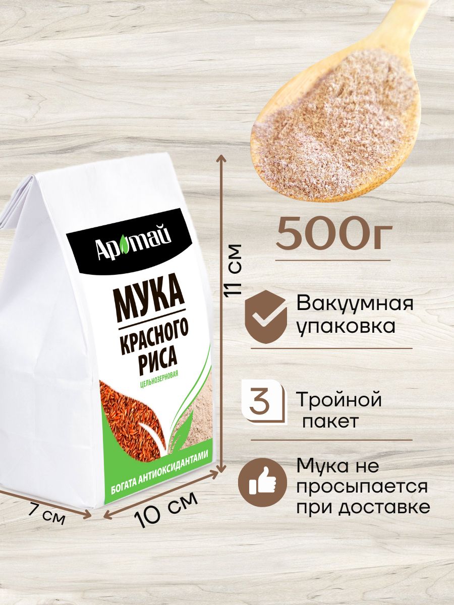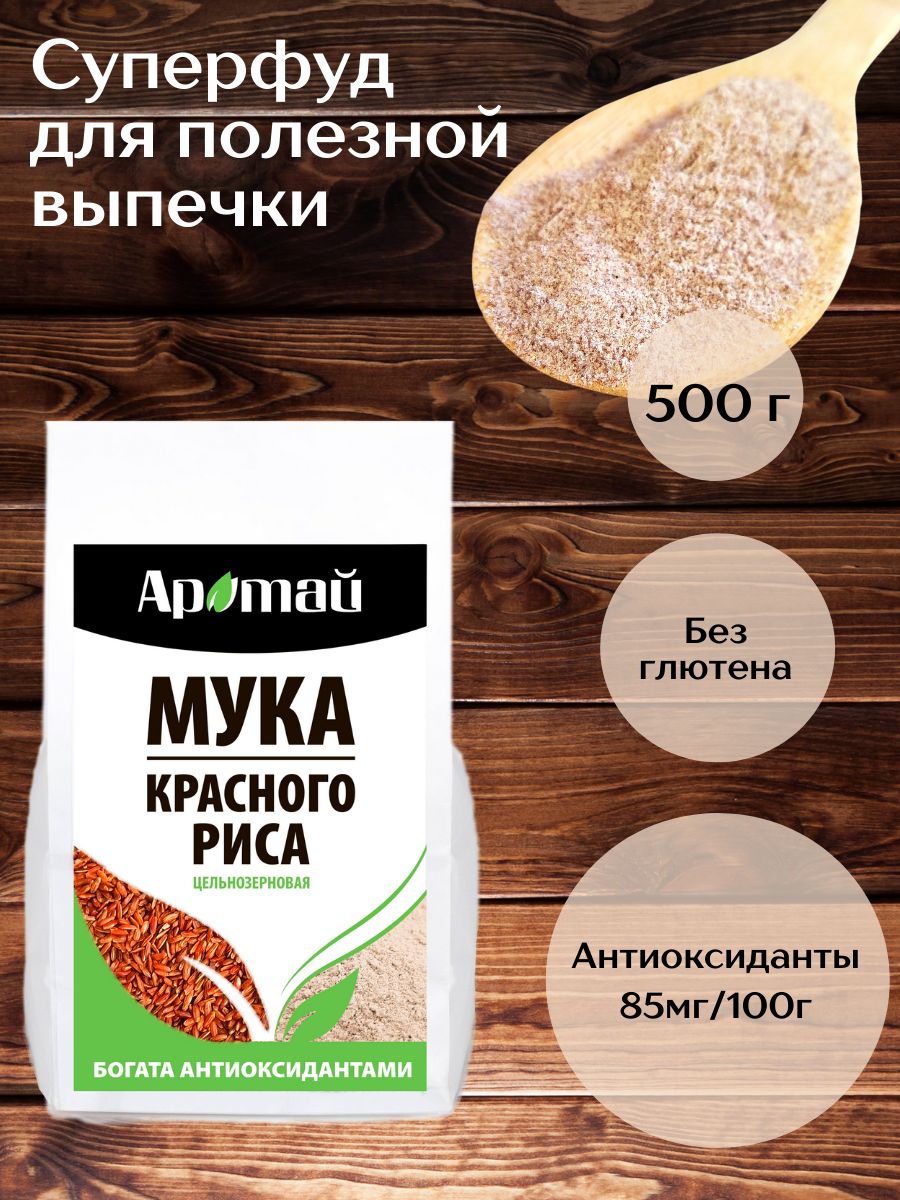 Мука красного риса цельнозерновая, Аратай, 500 гр