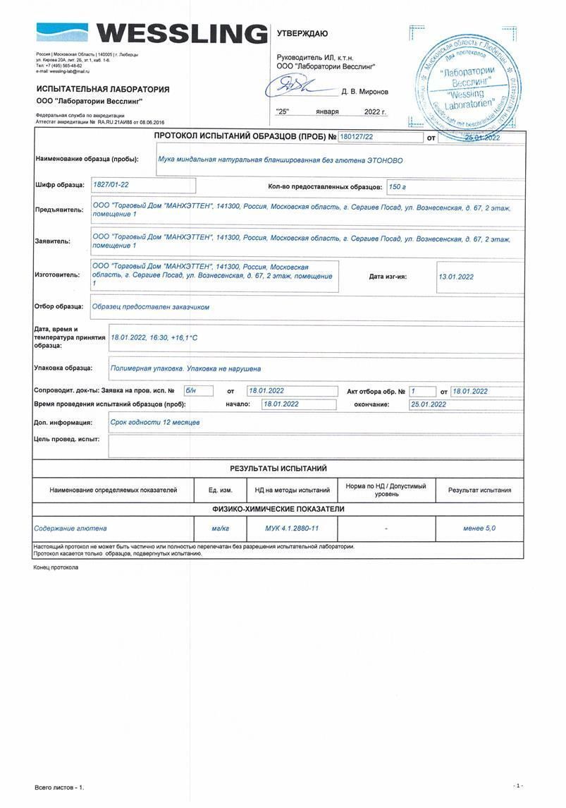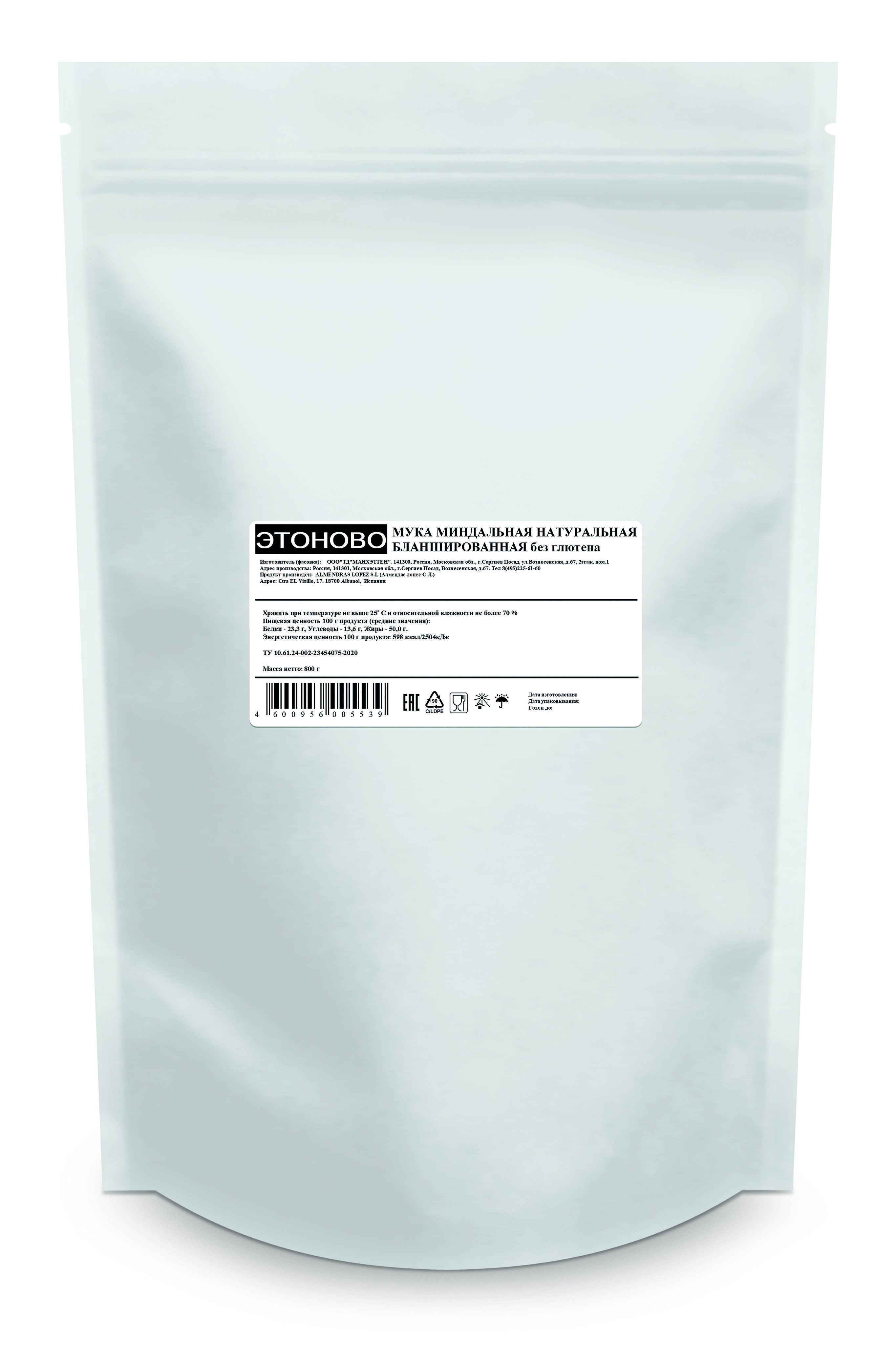 Мука миндальная бланшированная ЭТОНОВО без глютена 800 г