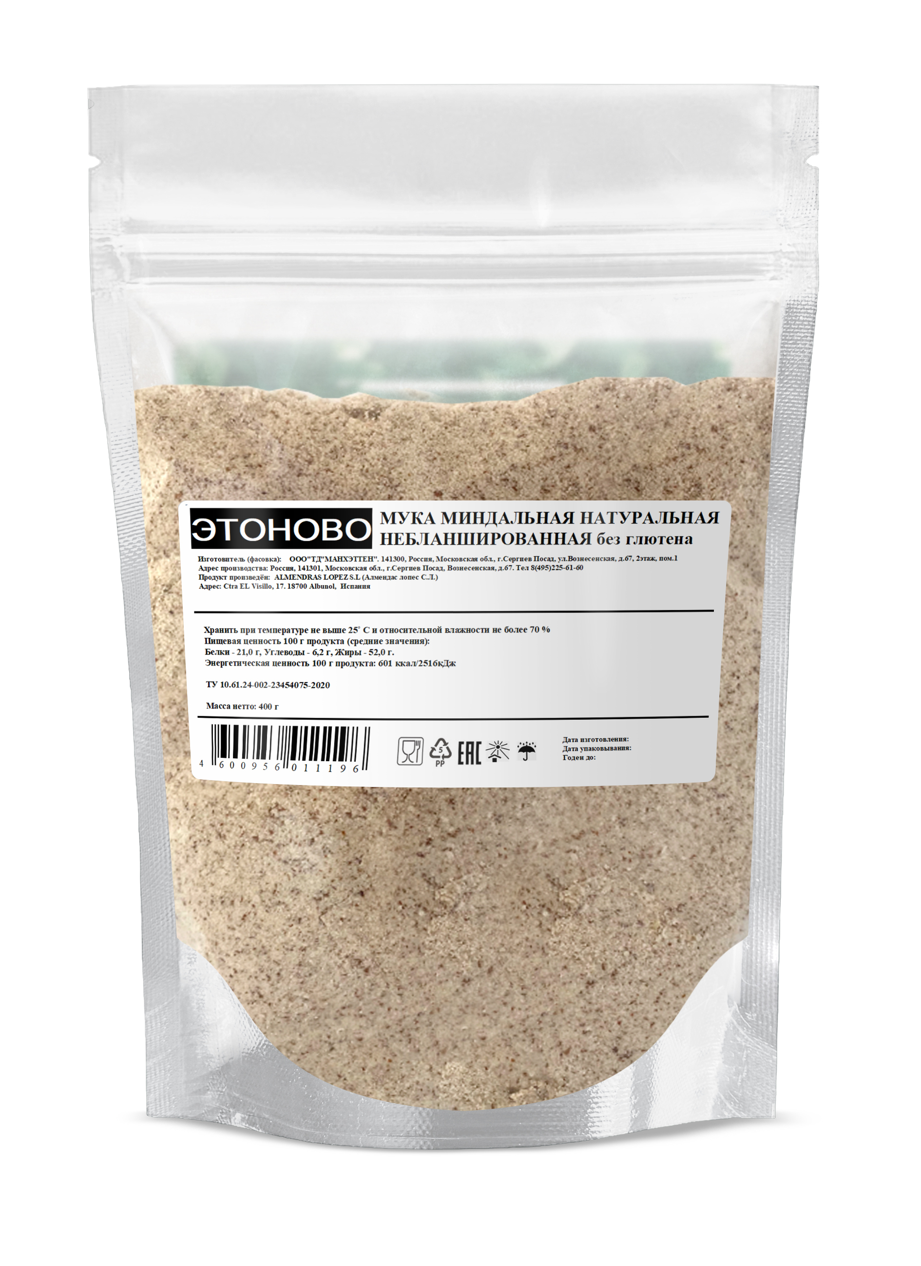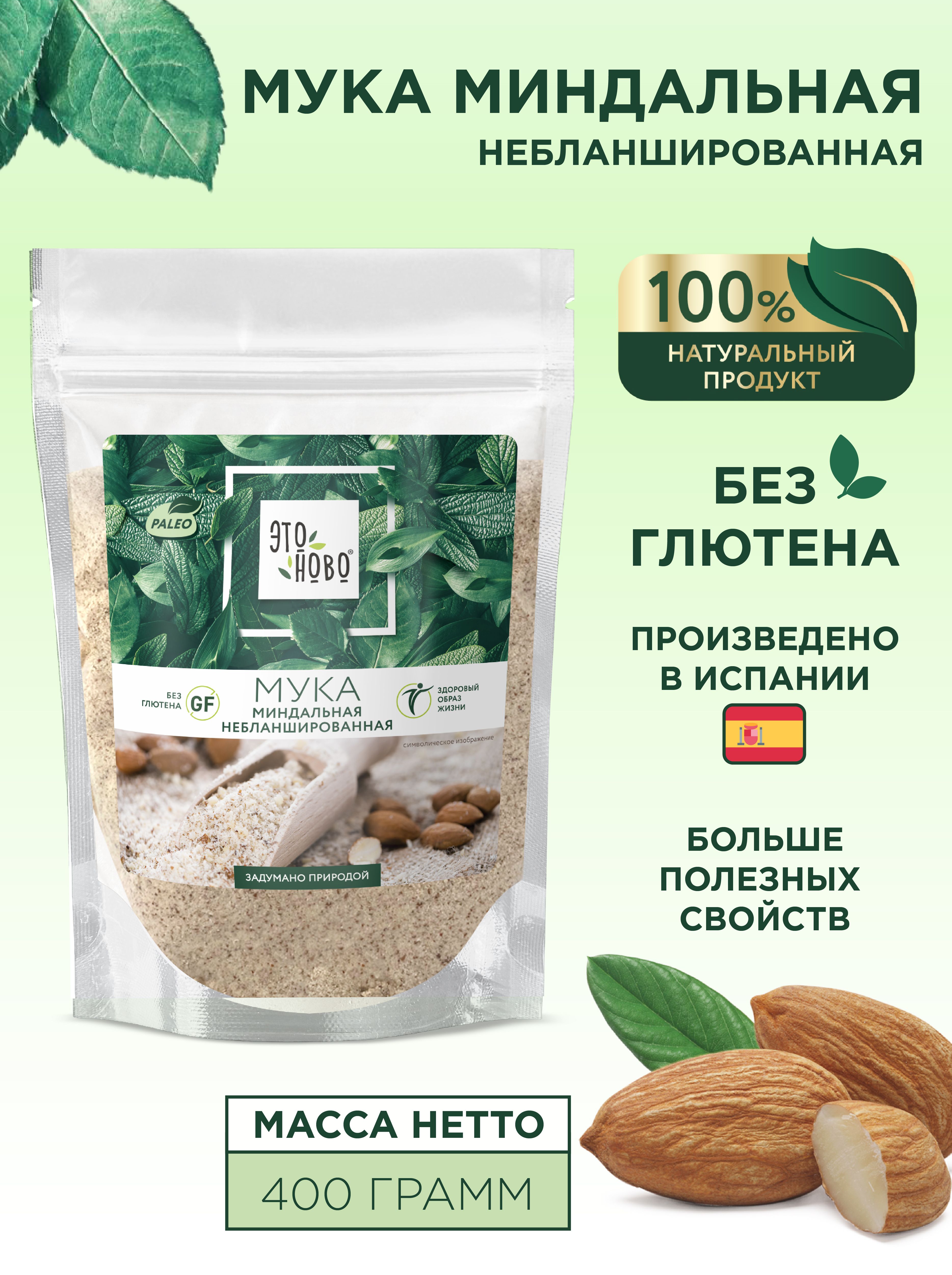 Мука миндальная небланшированная без глютена ЭТОНОВО, 400 г