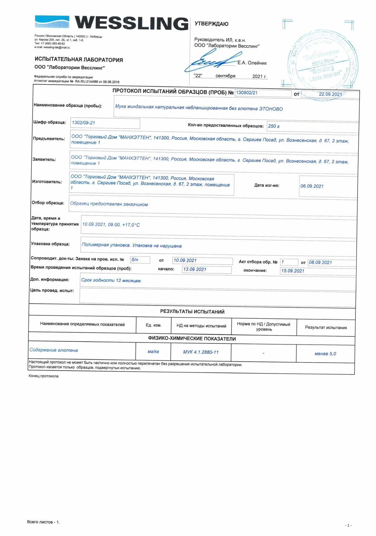 Вид муки Миндальная
