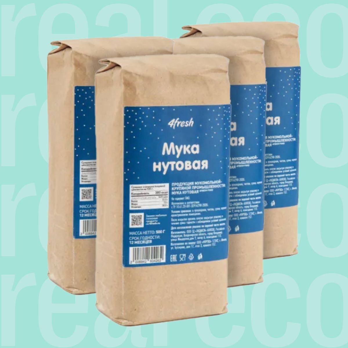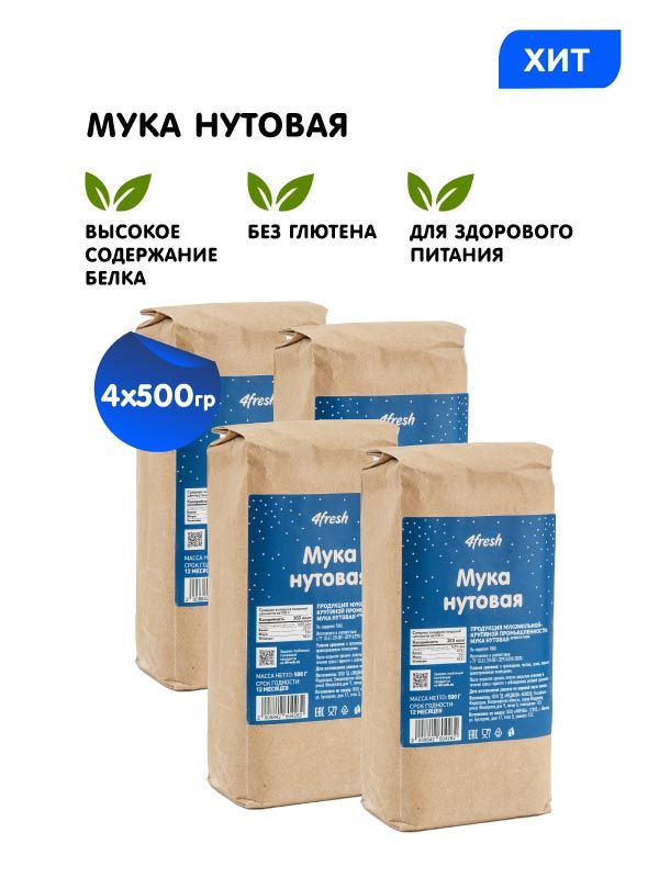 Мука нутовая без глютена 4fresh FOOD, 4 упаковки по 500г