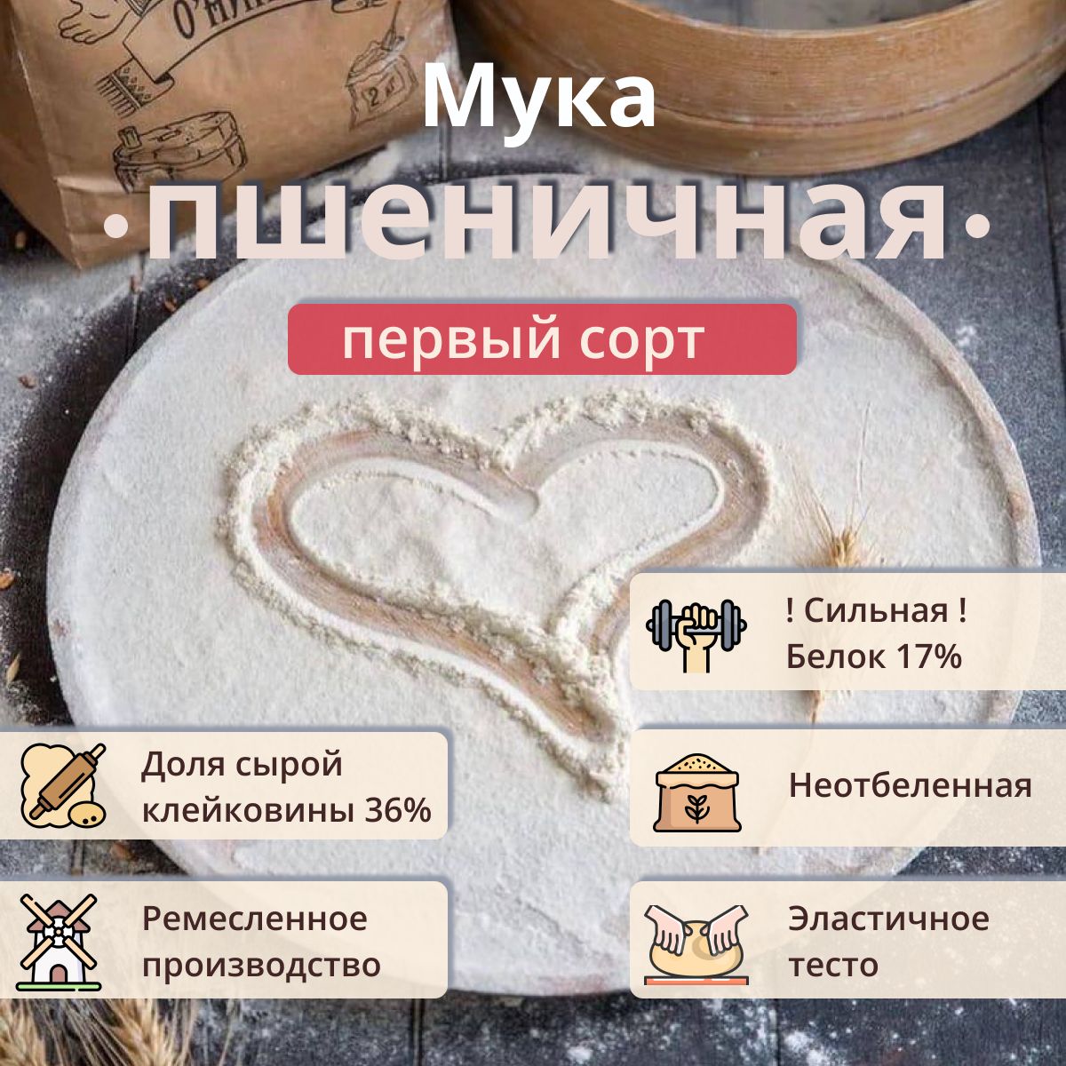 Описание: Это потрясающая мука первого сорта изготовлена из био-зерна. Она имеет в составе частички оболочки и зародыша, что даёт насыщенный хлебный вкус, а высокое содержание белка - даёт упругий нежный мякиш.Первый сорт - является наилучшим решением для выпечки домашнего хлеба. Хлеб будет иметь нежную структуру и непревзойдённый аромат.