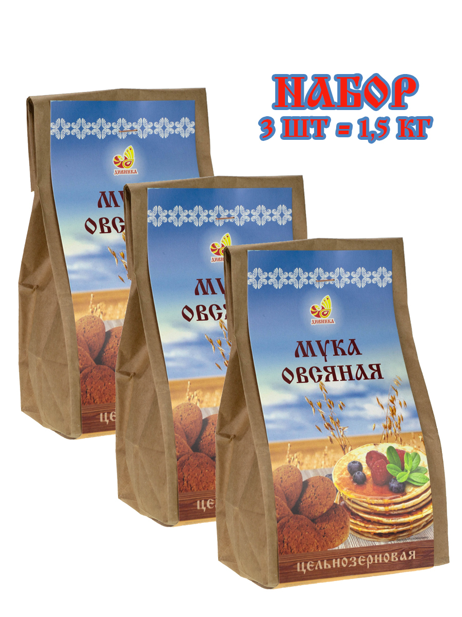 Мука овсяная цельнозерновая 500 гр х 3 шт НАБОР Дивинка