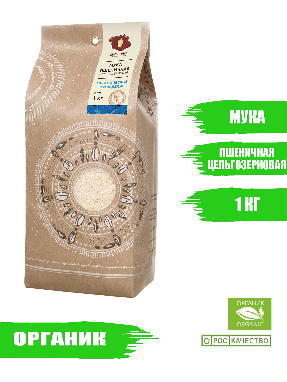 Мука пшеничная цельнозерновая БиоЗерно органическая 1 кг