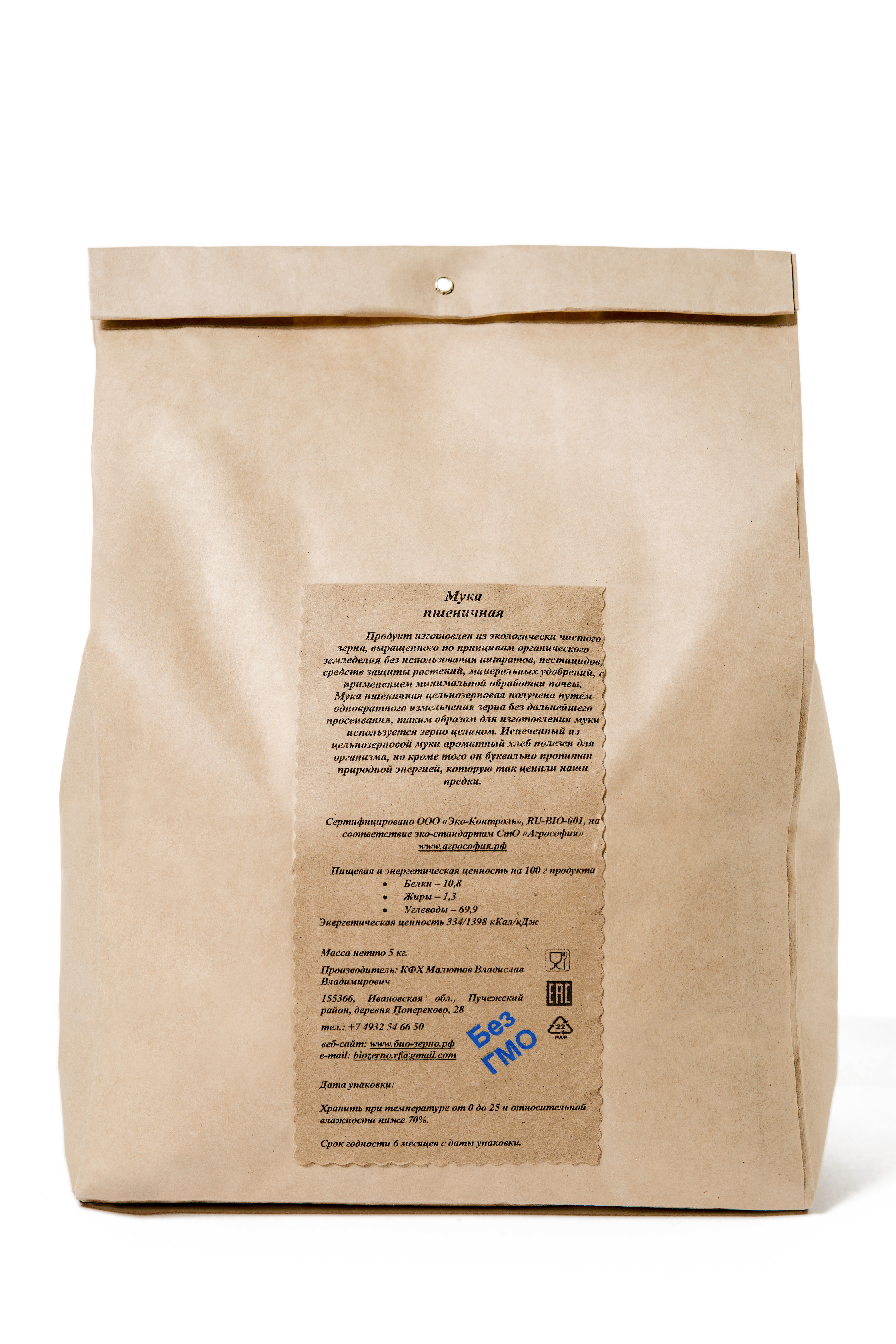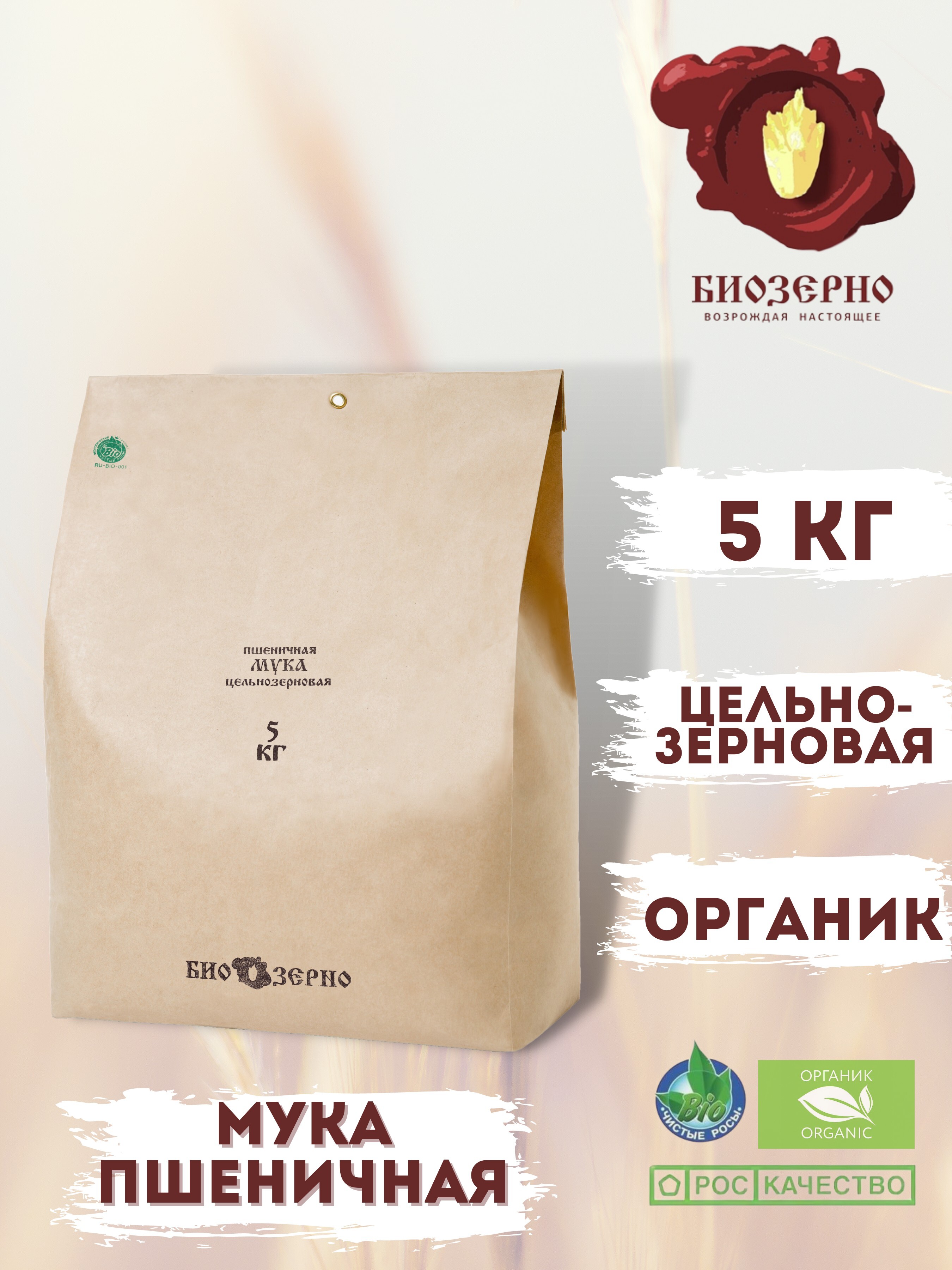 Мука пшеничная цельнозерновая БиоЗерно органическая 5 кг