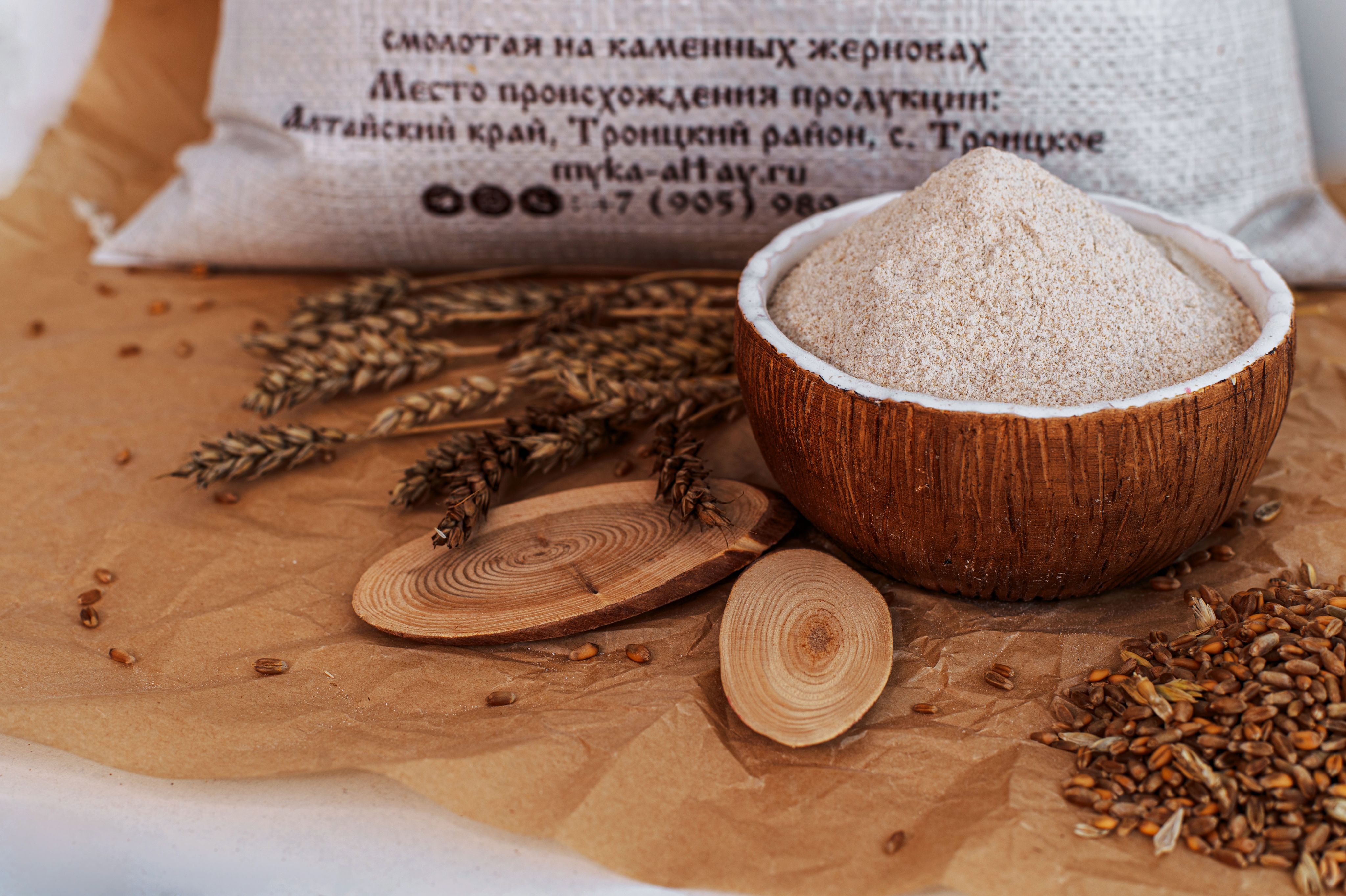Мука пшеничная цельнозерновая "Большеречье" смолотая на каменных жерновах, 5 кг