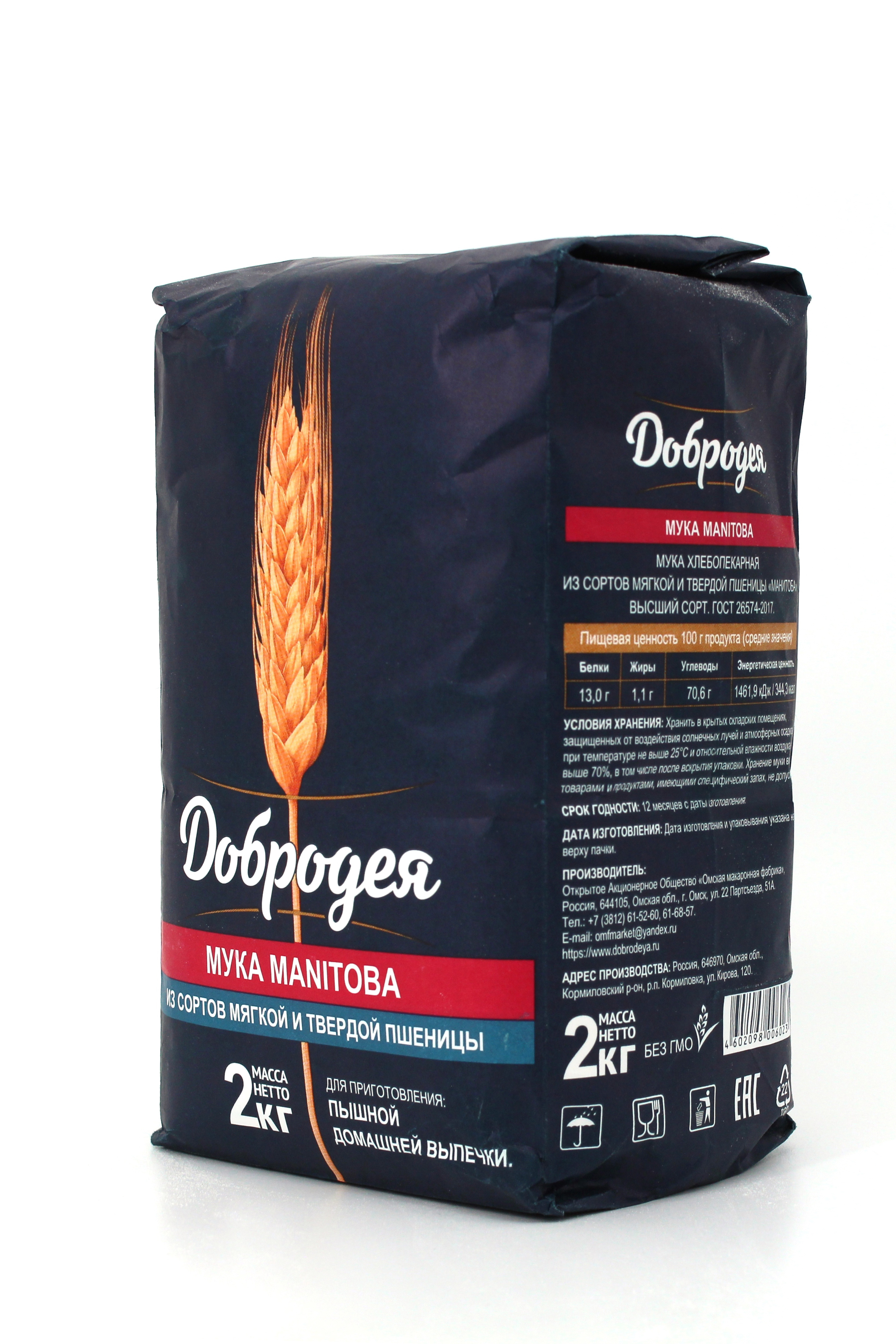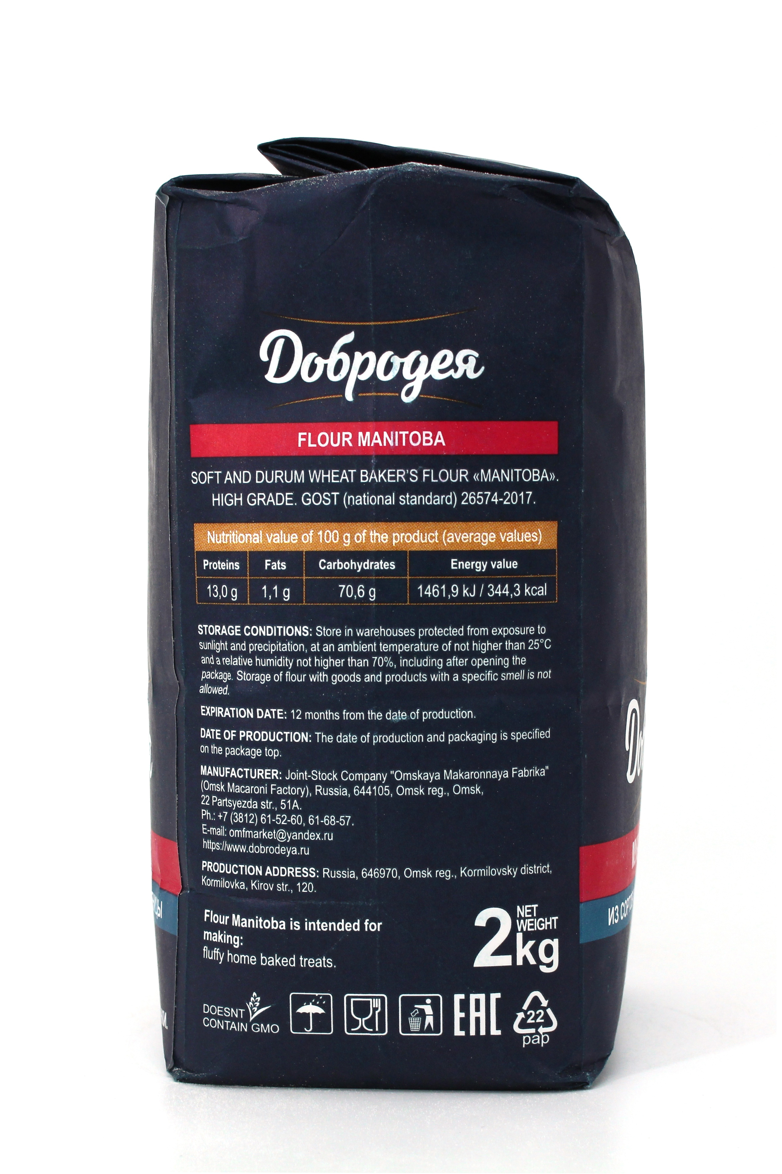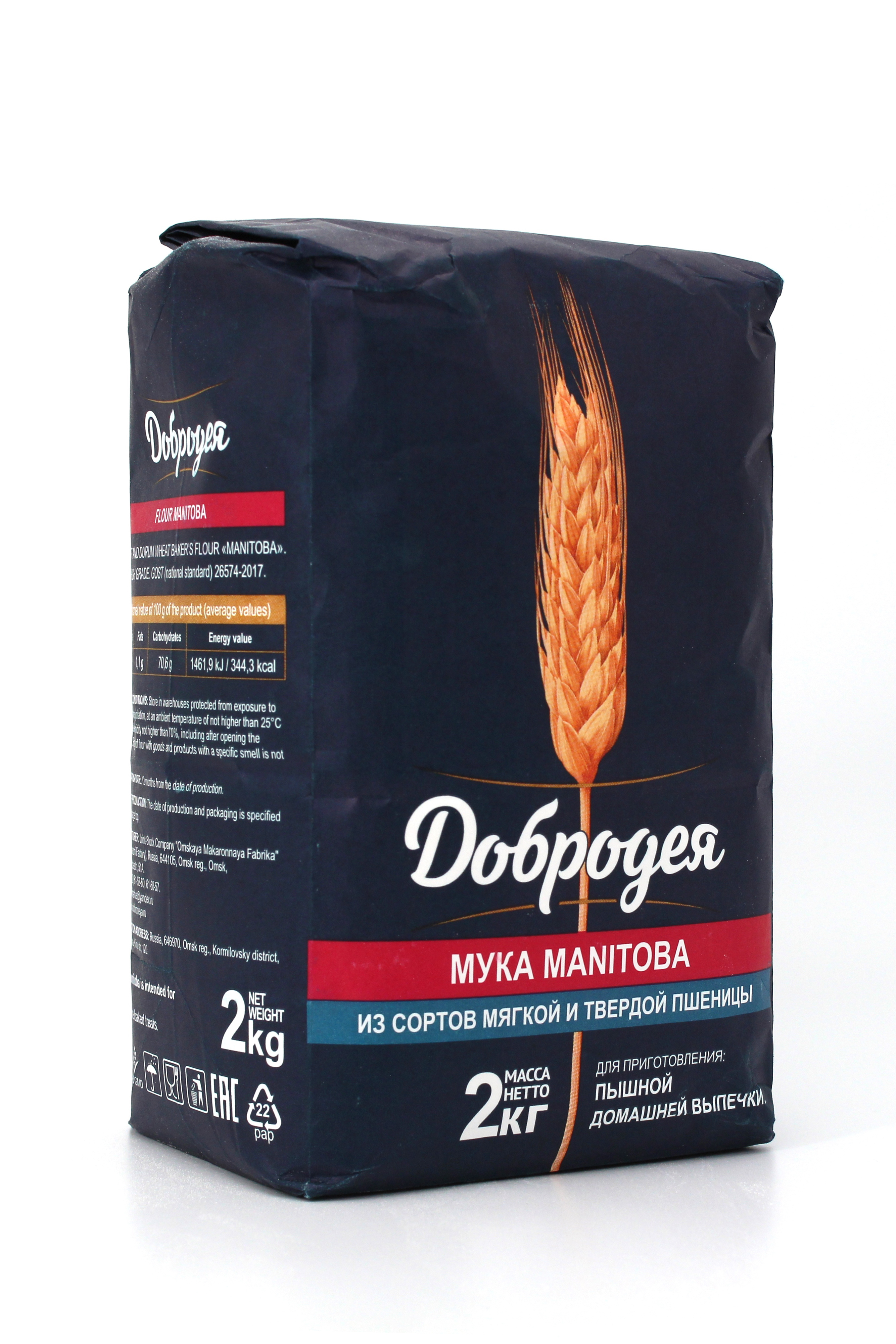 Мука пшеничная "ДОБРОДЕЯ" высший сорт из мягких и твердых сортов пшеницы МАНИТОБА 2 кг