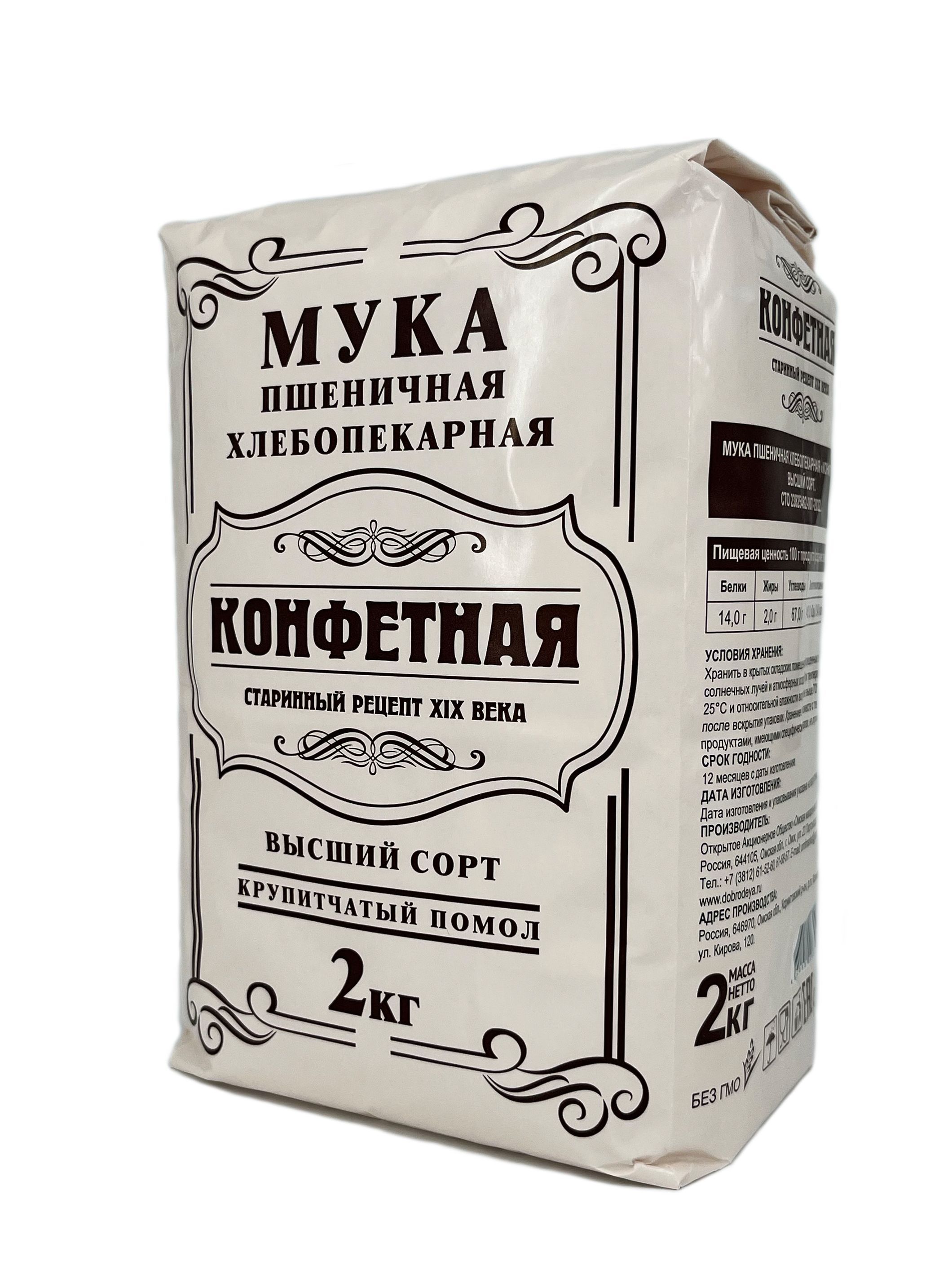 Мука пшеничная "ДОБРОДЕЯ" высший сорт КОНФЕТНАЯ 2 кг