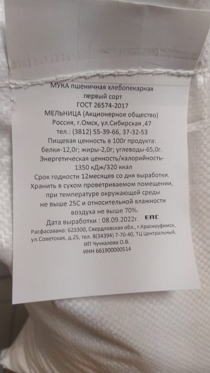 Мука пшеничная хлебопекарная 1сорт ГОСТ 5кг